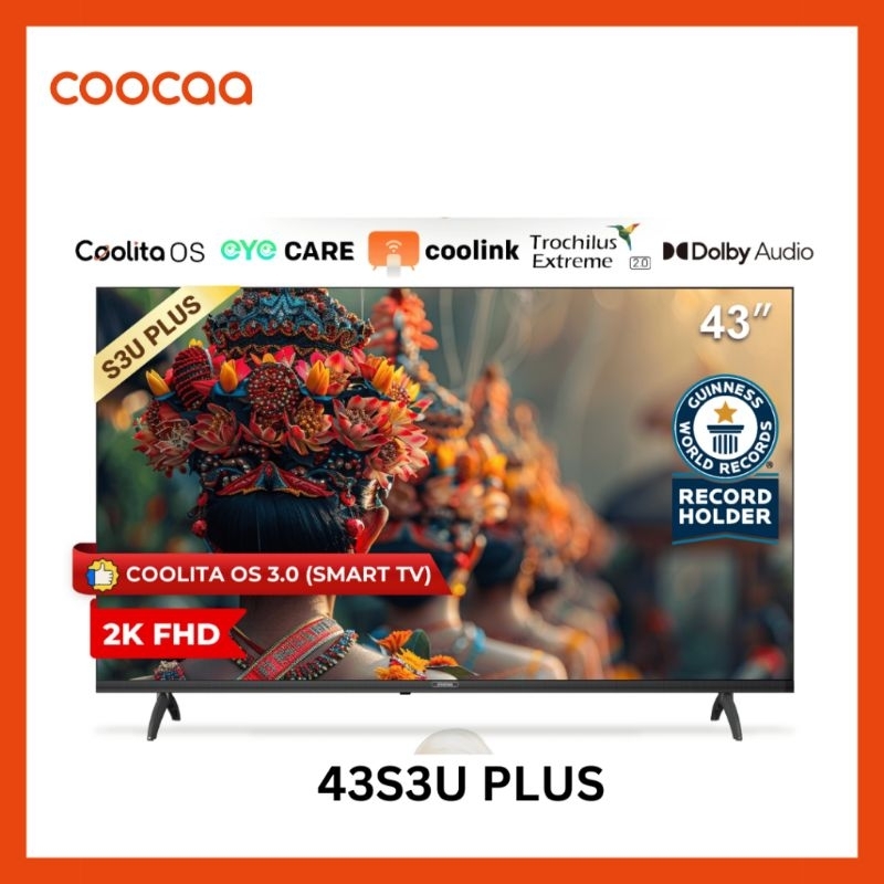 Led TV coocaa 43 inch 43" 43S3U Plus Smart TV Res 2k 43S3U+ wifi youtube koka coca cooca