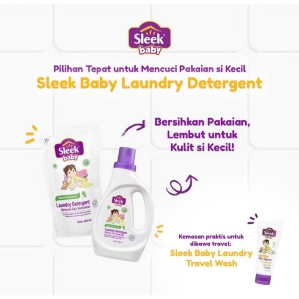 SLEEK Baby Laundry Detergent 900ml Kemasan Jumbo - Deterjen Pakaian Bayi 900 ml