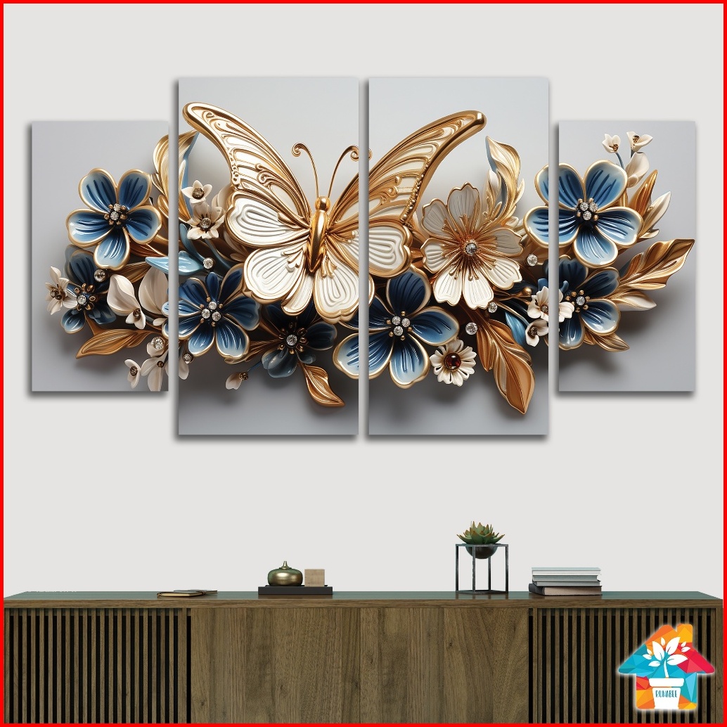 Runabee Hiasan Dinding Set Besar Dekoratif 3d White Butterfly Flowers Poster Pajangan Kayu