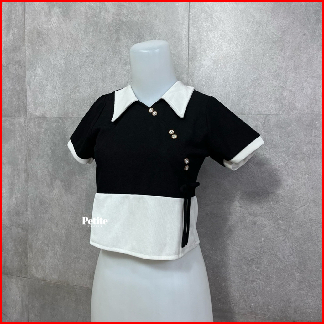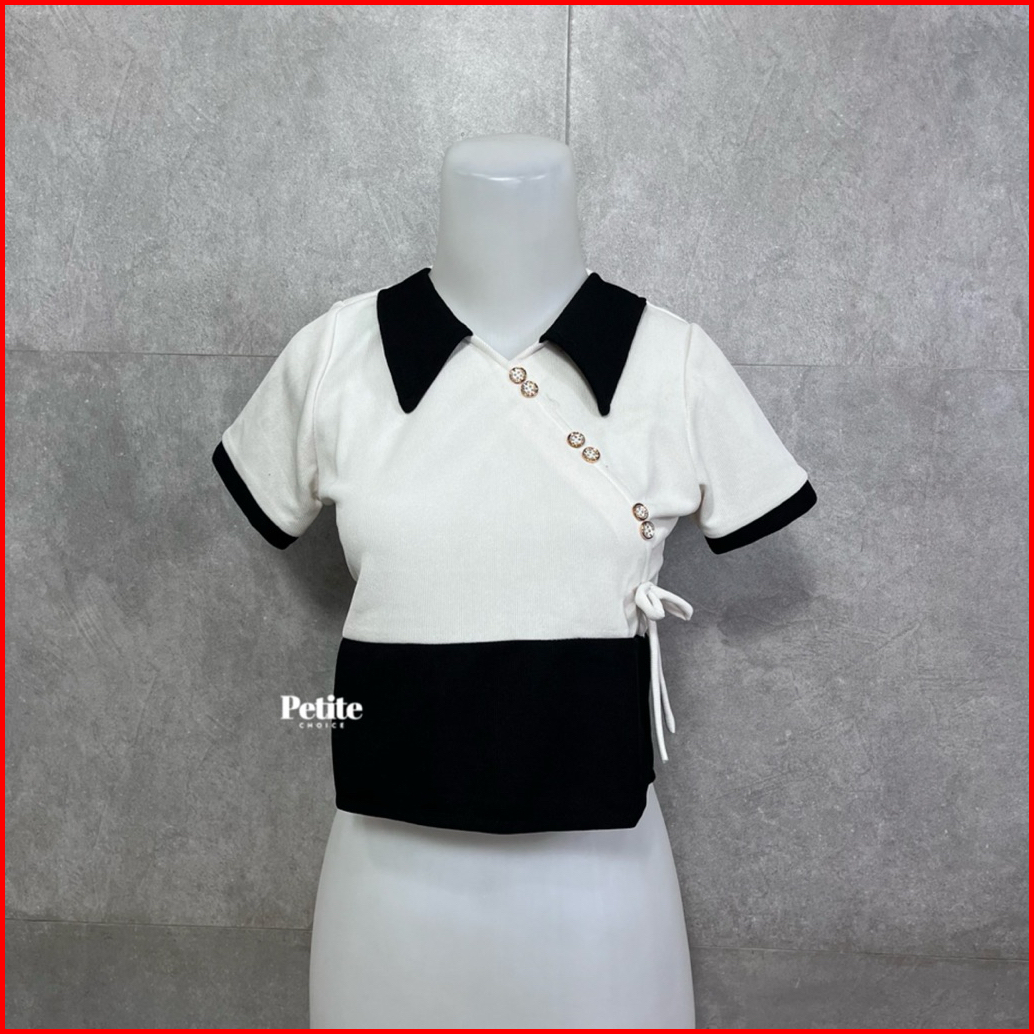 Petitechoice Miya Top Atasan Crop Wanita Knit Stretch Casual Slim Fitting Kancing Tali Korean Knitwear Panjang Basic Coq