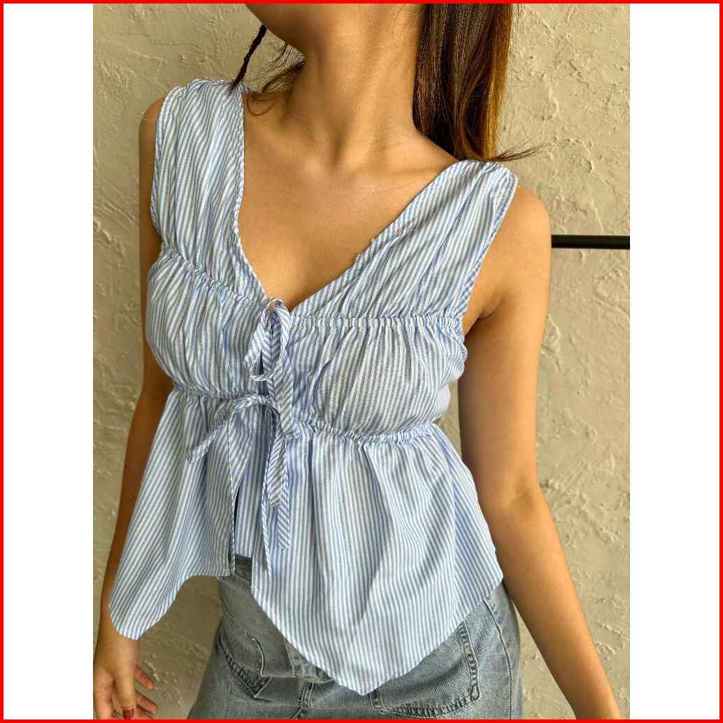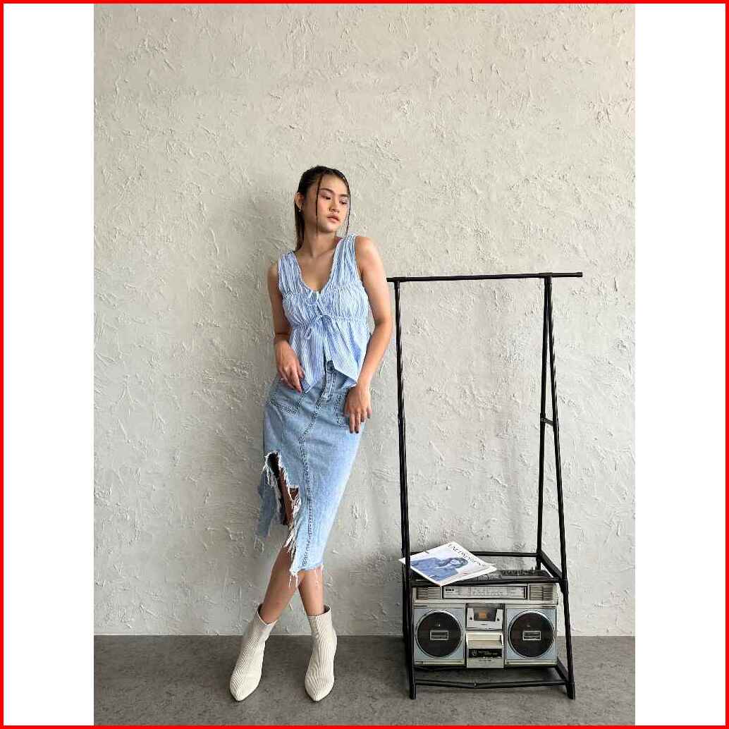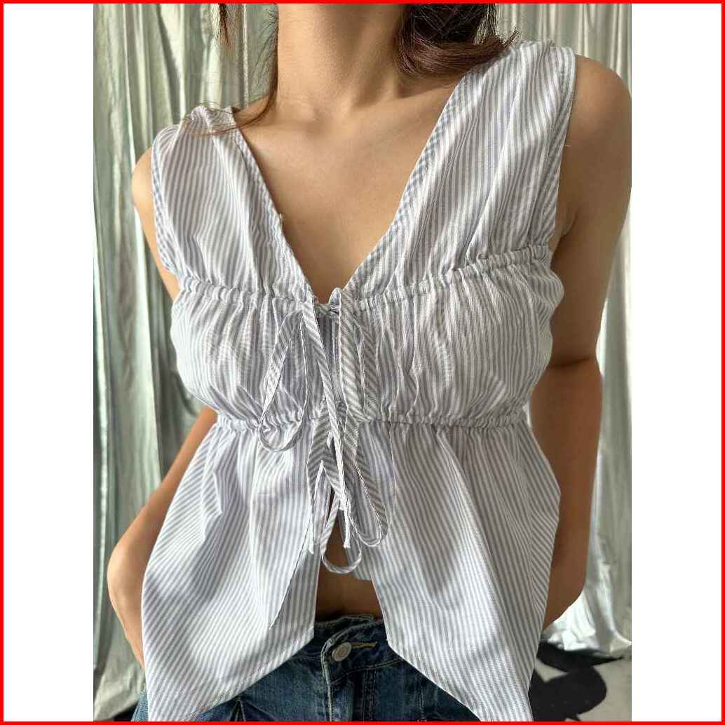 Snatched Arina Top - Atasan Wanita Salur Tali Serut Tanpa Lengan Korean Style Drawstring
