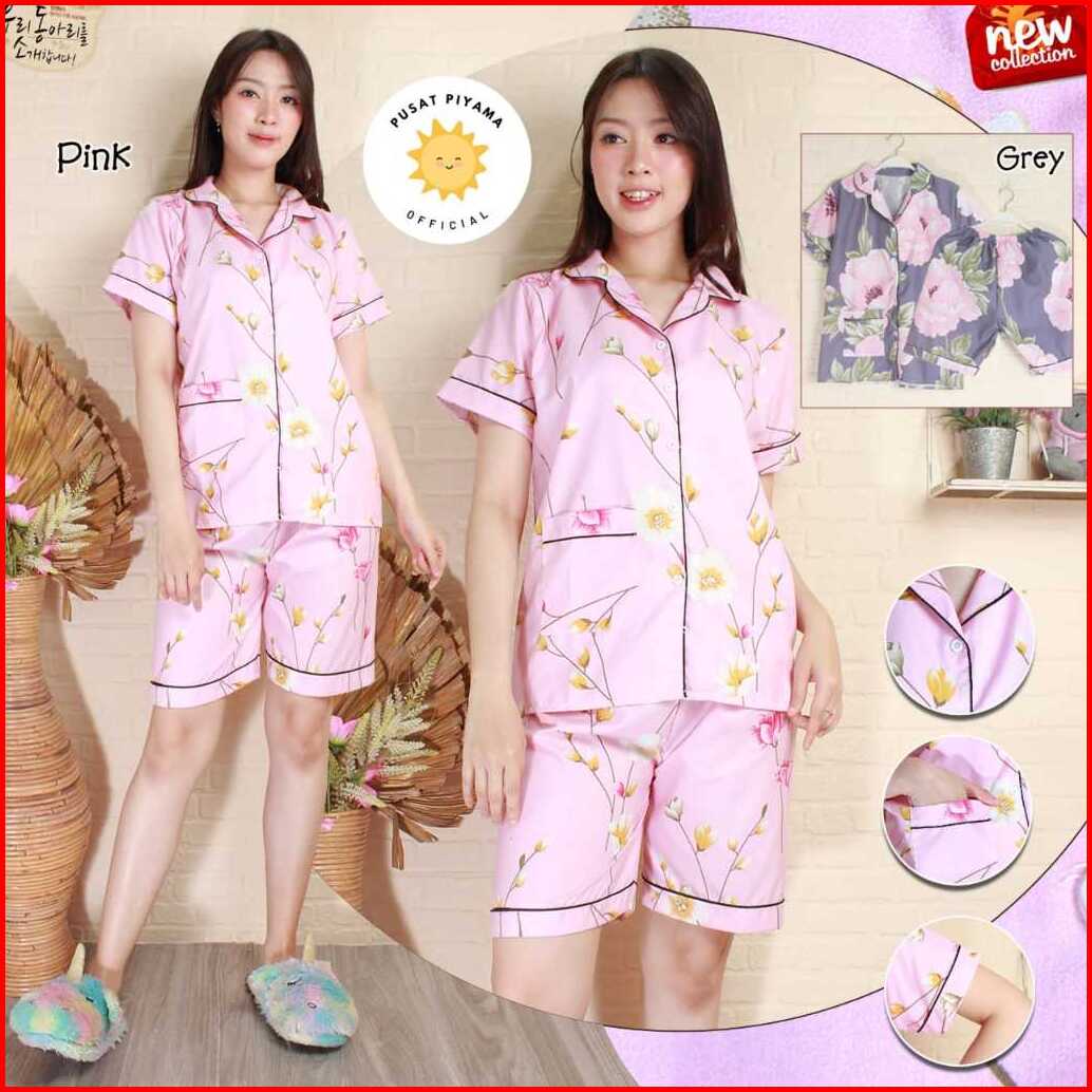 Piyama Baju Tidur Wanita Celana Pendek Motif Bunga Setelan Cewek Dewasa Lengan Pendek Hotpans