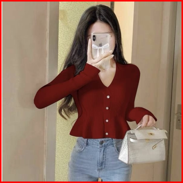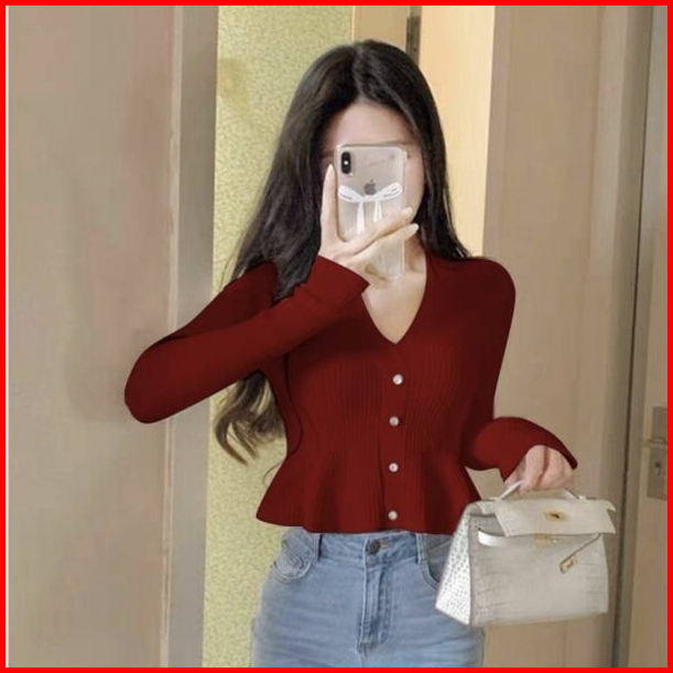 Ajw Atasan Wanita Crop Top Peplum Knit Premium Rbu Atasan Wanita Lengan Panjang Crop Peplum Button Up Silver Knit Premiu