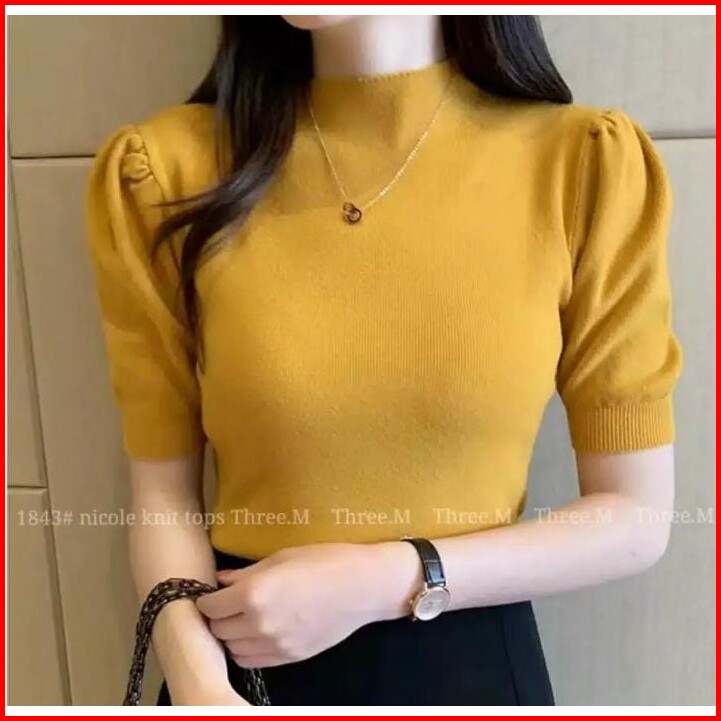 Nicole Knit Premium - Atasan Kerah Tinggi Wanita - Knit Tops 3 4