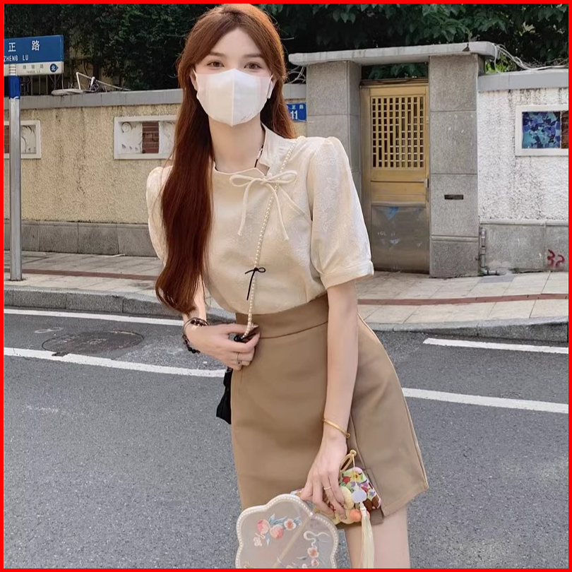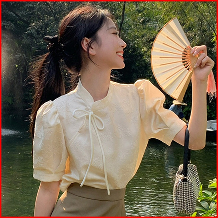 Yikoo-kemeja Korea Lengan Pendek Shirt Cheongsam Atasan Wanita Blouse