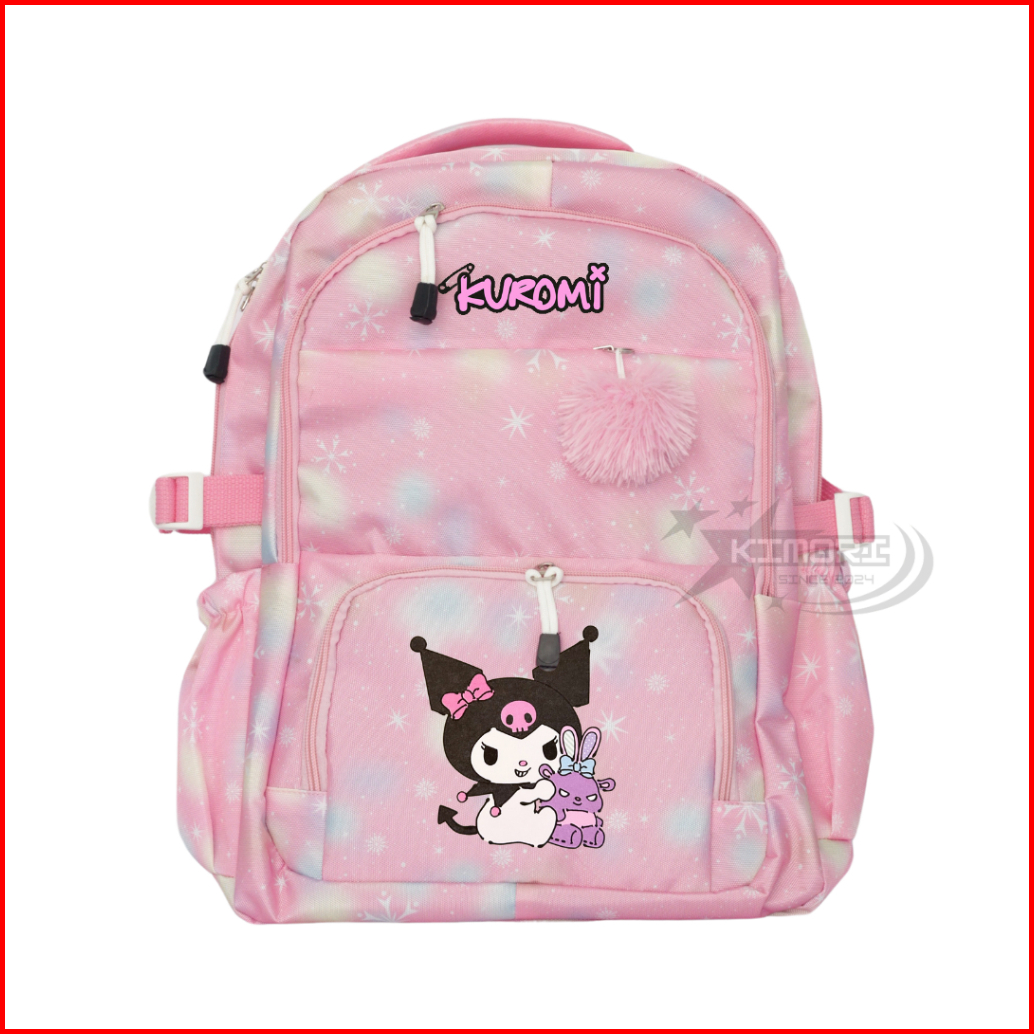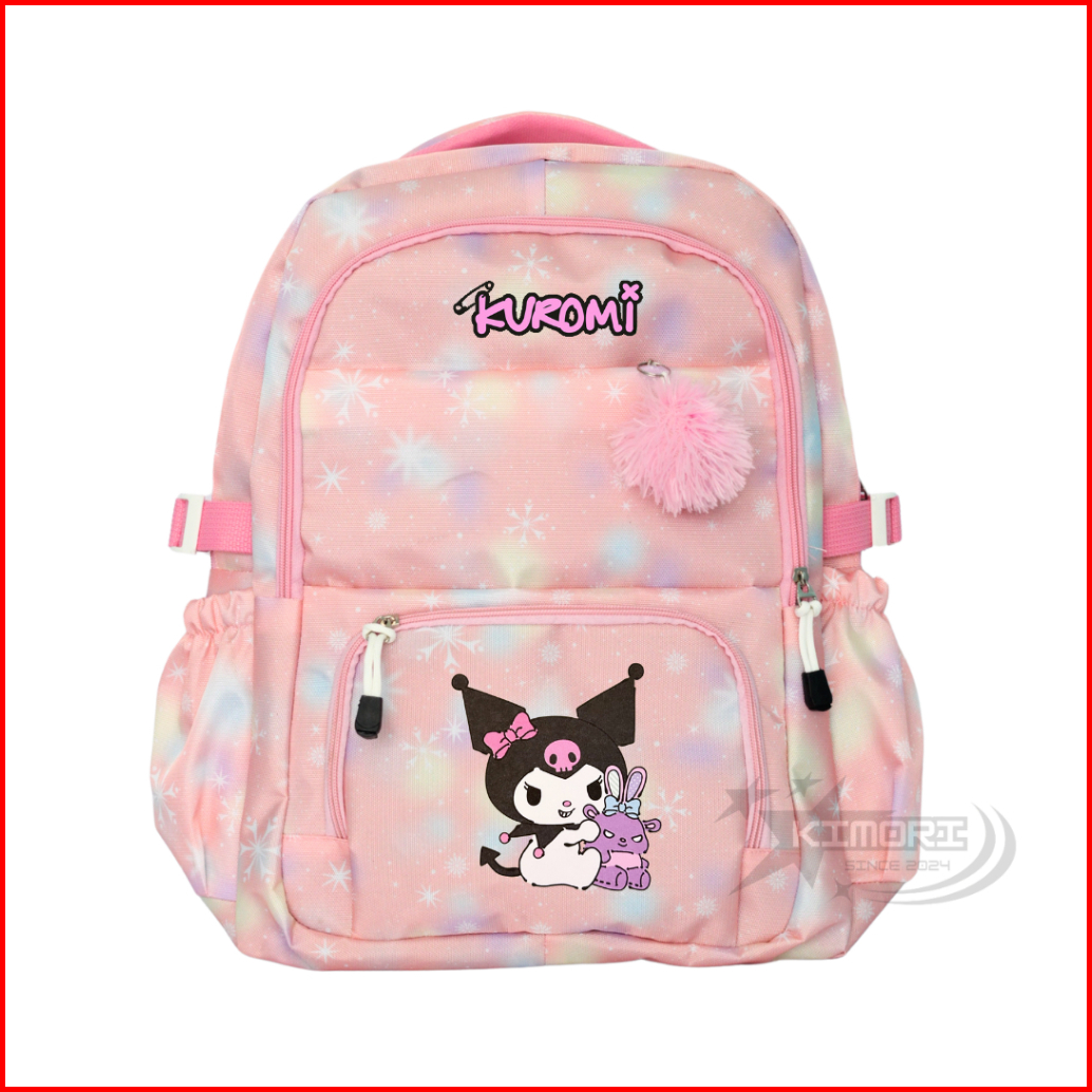 Kimori.id - Tas Ransel Anak Perempuan Kuromi Sekolah Tk Sd Smp Rainbow Warna Warni Tas Punggung Karakter Sanrio Lucu