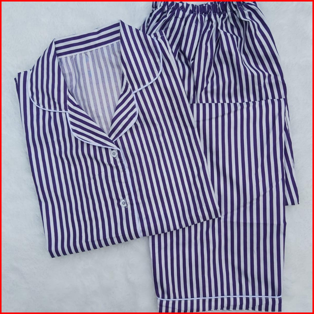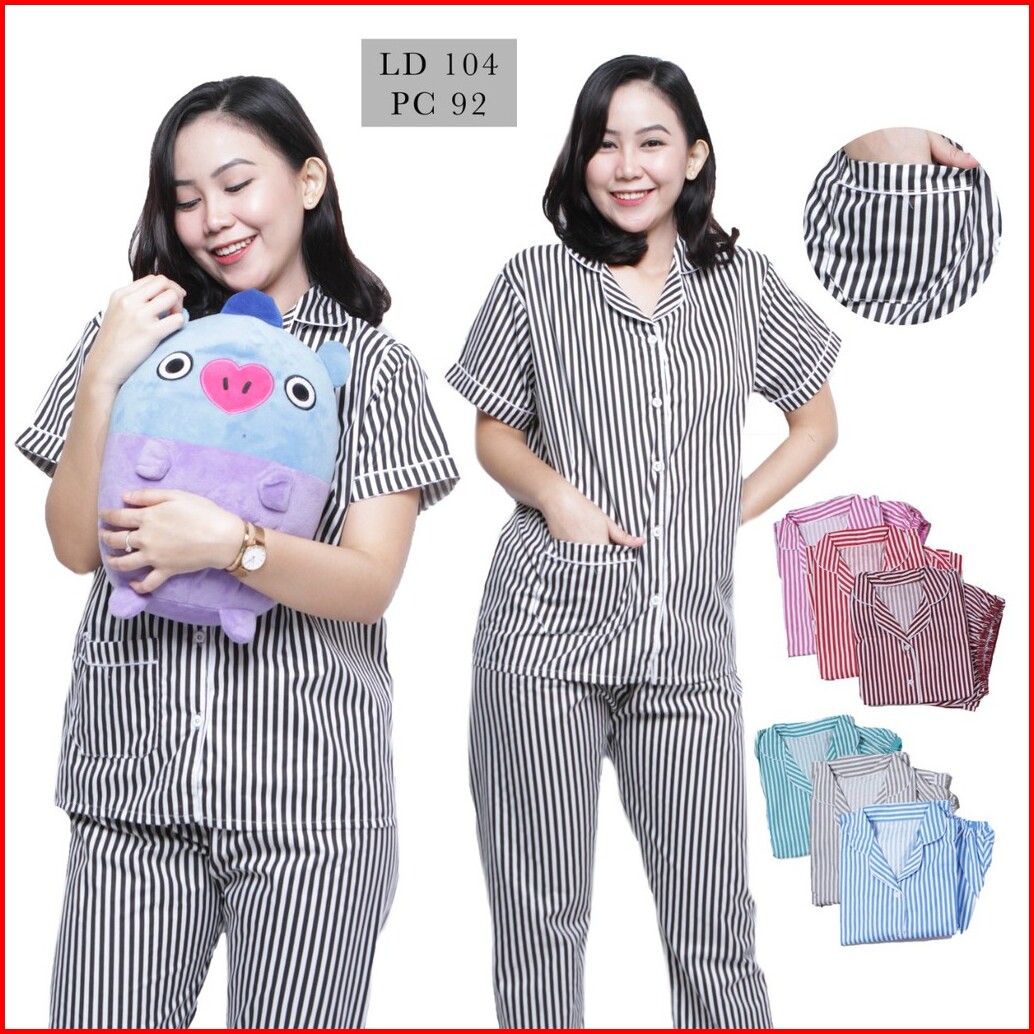 Bj-piyama Cp Wanita Dewasa Salur - Baju Tidur Lengan Pendek