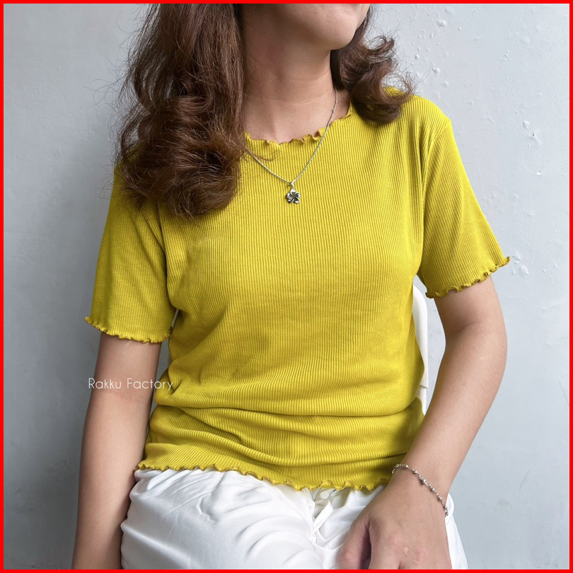 Basic Shirt Rib Knit Neci Kriwil - Kaos Rib Lengan Pendek Premium Inner Korea