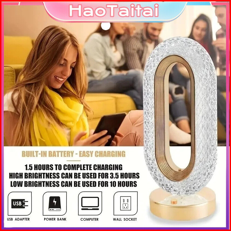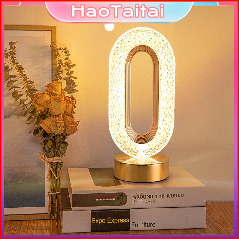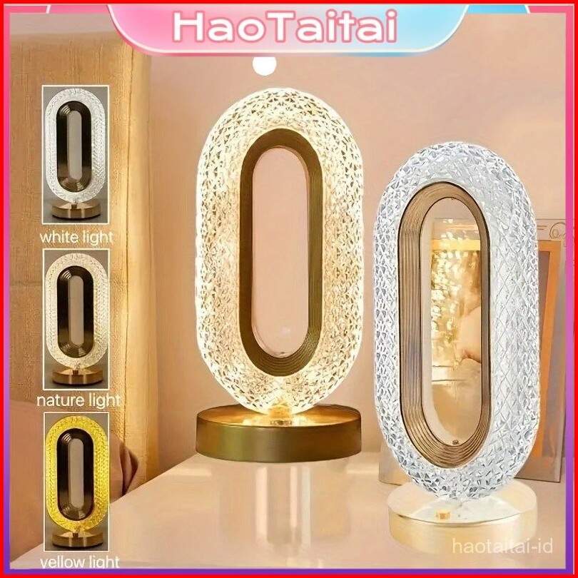 Lampu Meja Hias Aesthetic Acrylic Crystal Led Desk Lamp 3 Warna Peredupan Sentuhan Cahaya Cocok Lampu Tidur Lampu Baca D