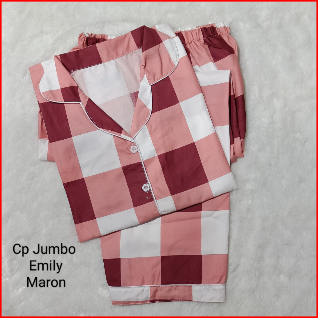 Piyama Wanita Motif Kotak - Setelan Baju Tidur Cp Jumbo Lengan Pendek Bahan Katun