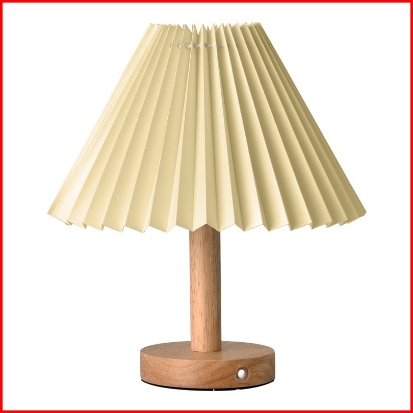 Lampu Tidur Aesthetic Lampu Meja Vintage Classic Motif Kayu Lampu Meja Minimalis Lampu Tidur Meja Korean Retro Pleated V