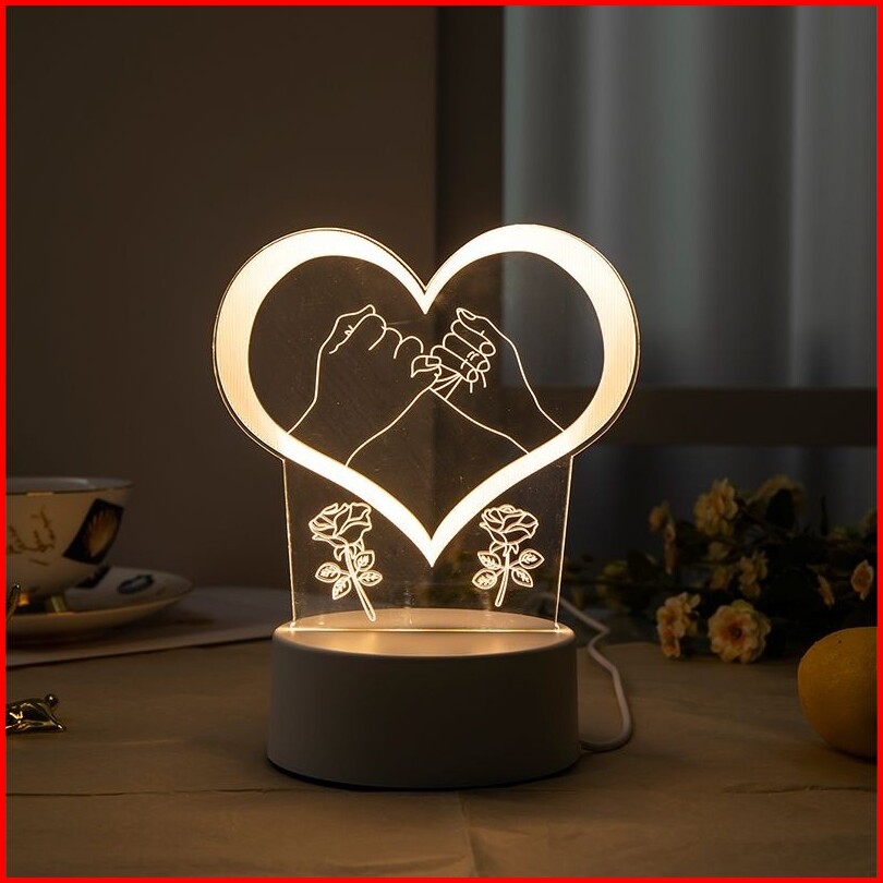 Lampu Hias Led 3d Lampu Tidur Lucu Bentuk Hati Lampu Akrilik 3d Malam Led