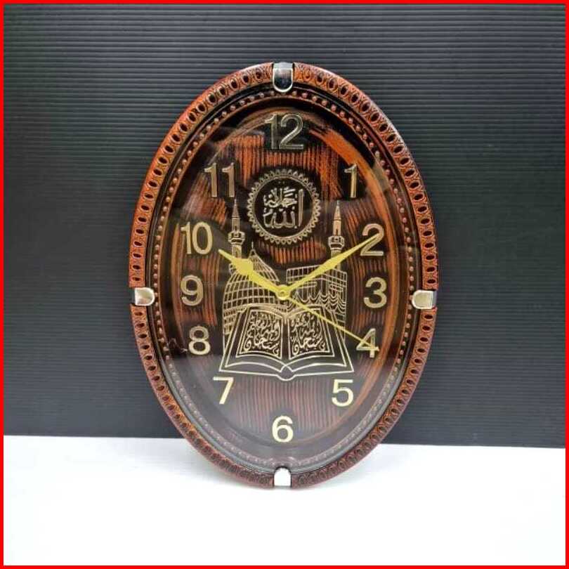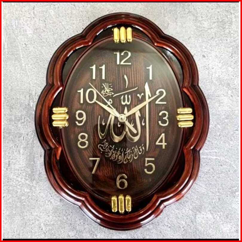 Jam Dinding Nikko Nk-8196 Kaligrafi Kayu Wall Clock Minimalis Diameter 26 X20.5cm