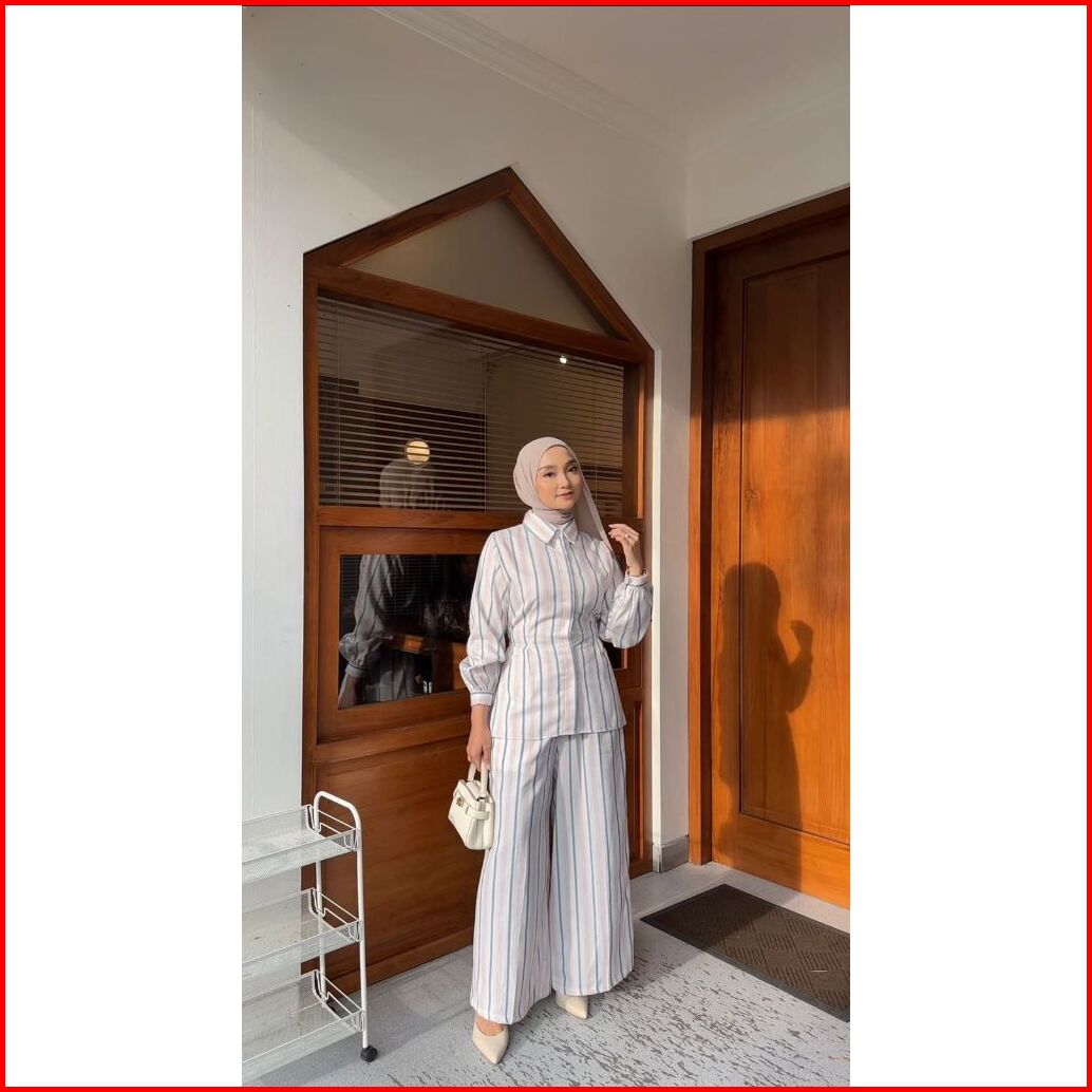Nadiraa Hijab Arunika Top Kemeja Salur Cotton Linen