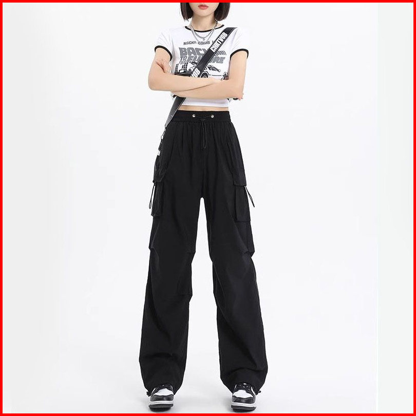 Kiya Cargo - Cargo Pants Wanita Hitam Jumbo Highwaist Loose -celana Kargo Wanita Korea Style Terbaru