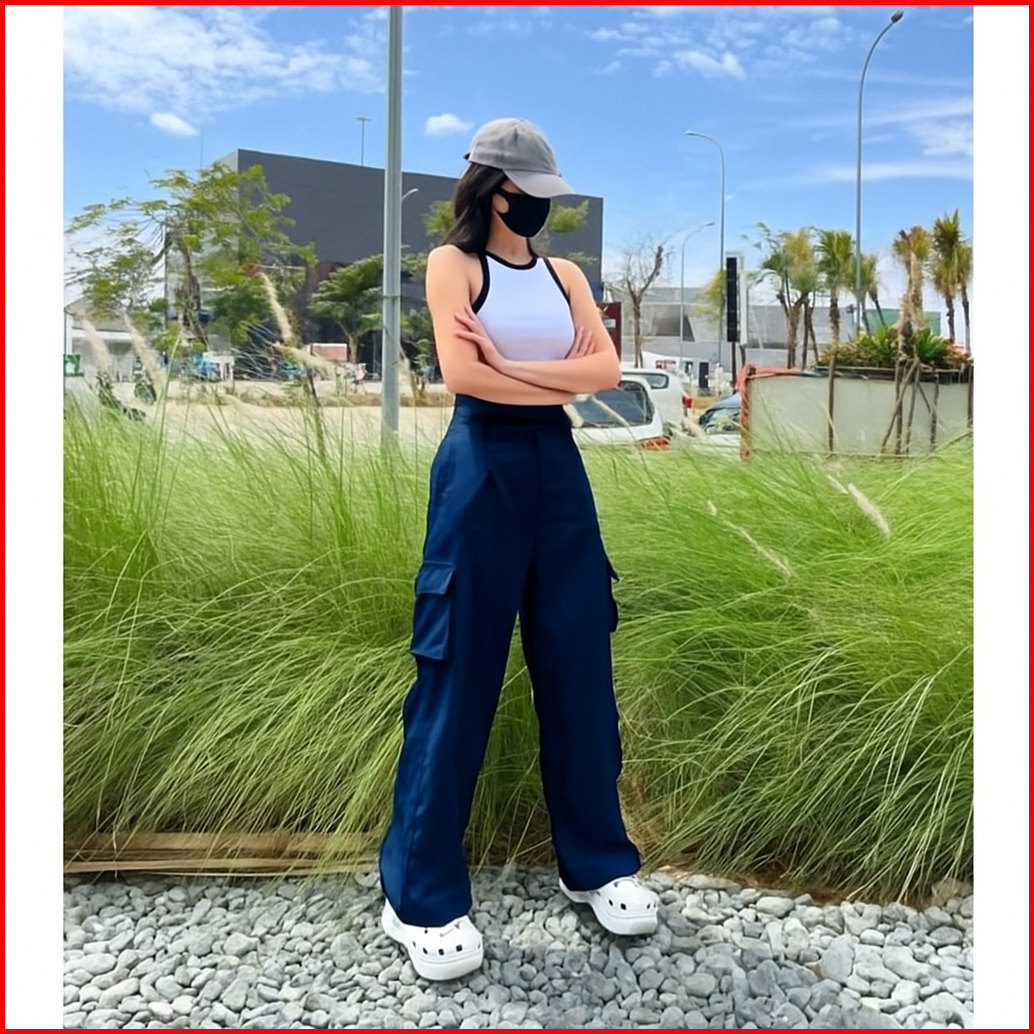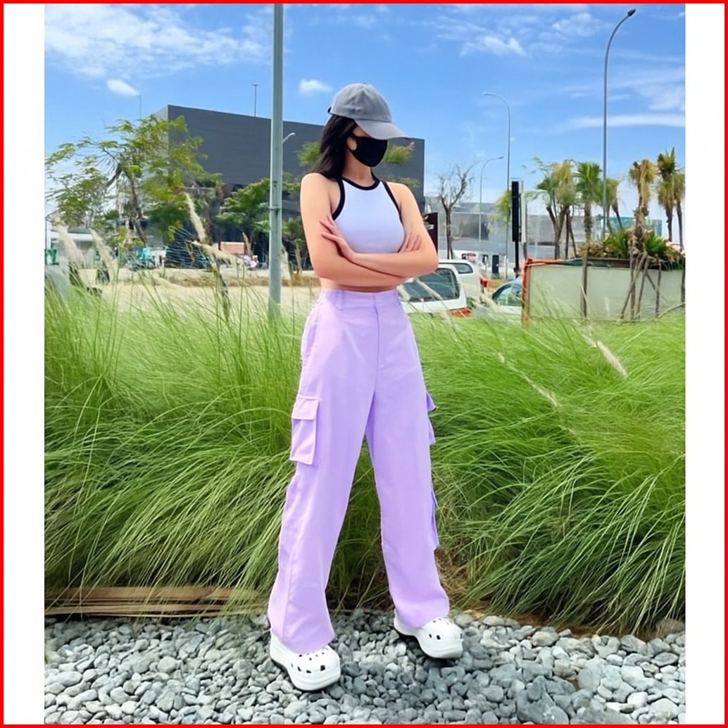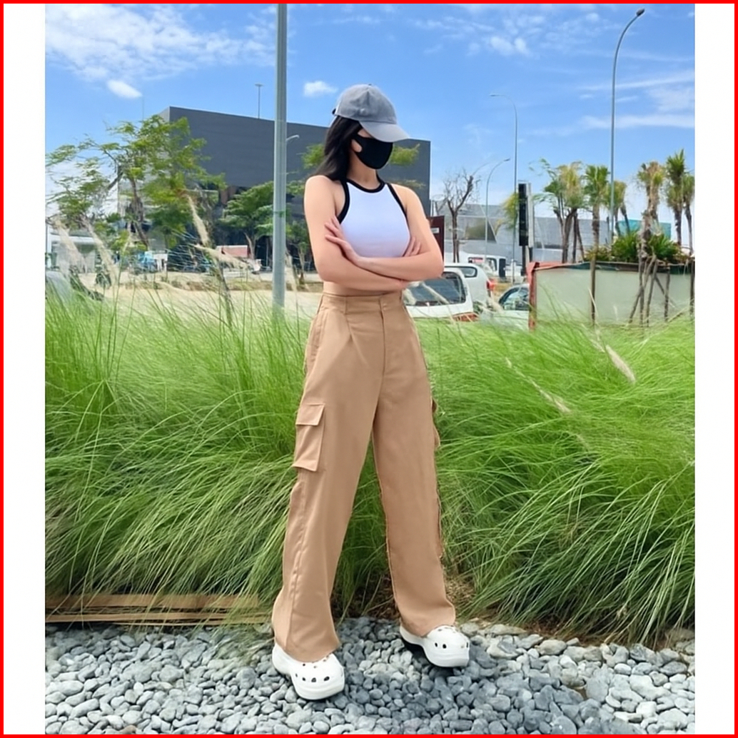Cargo Pants Highwaist Wanita Katun Sigaret Adem Cargoso - Celana Cargo Wanita Highwaist Loose Pants Trouser Korean Style