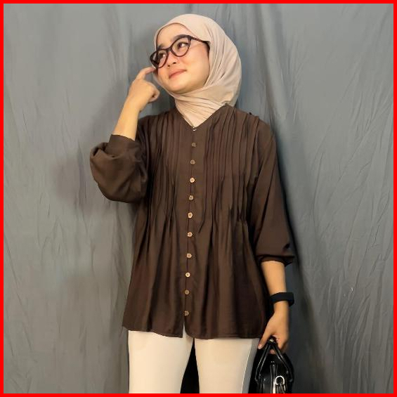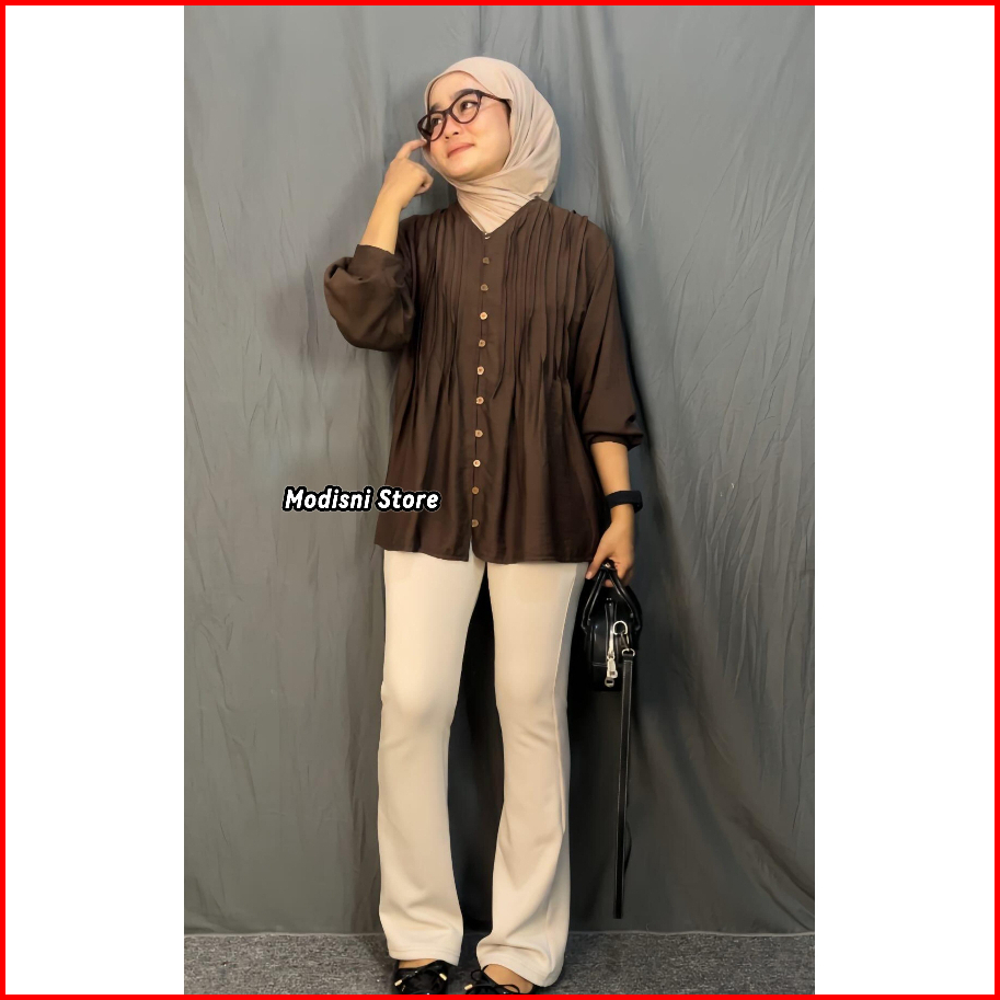 Blouse Shava - Blouse Rampel Atasan Wanita Polo Linen Casual Kekinian