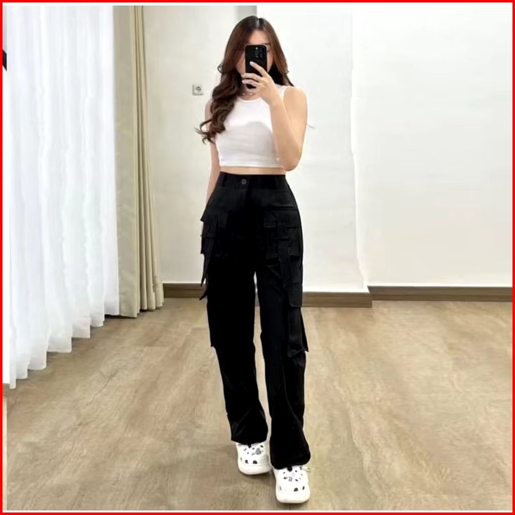 Yura Cargo Wanita Cargo Pant Pocket Celana Kargo Wanita Casual