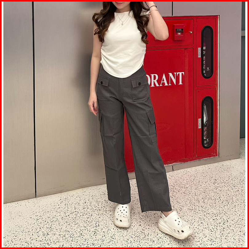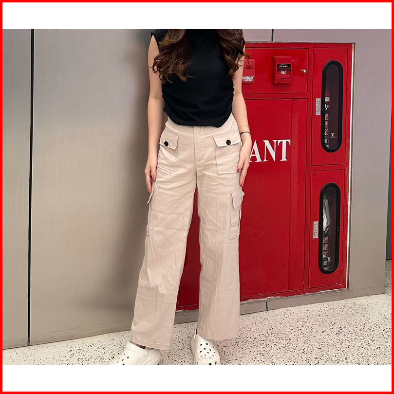 Alria Lily Cargo Pants - Celana Panjang Cargo Wanita Casual Bahan Premium 30