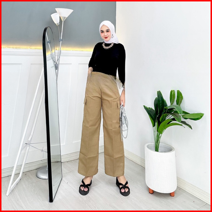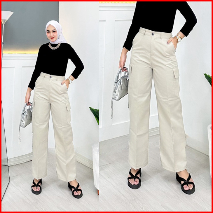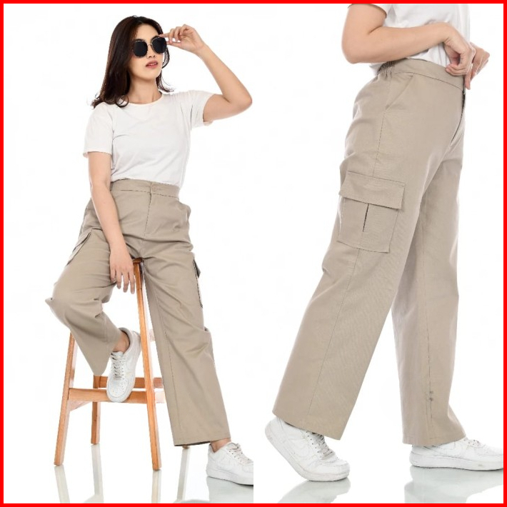 Celana Cargo Panjang Wanita Highwaist Jumbo Size M L Xl Xxl Kargo Pants Wanita Terbaru Kekinian