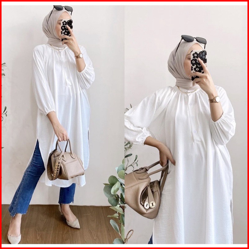 Meisa Tunik - Tunik Crinkle - Atasan Muslim Wanita - Tunik Simple Elgant 2025 Free Hijab Bergo