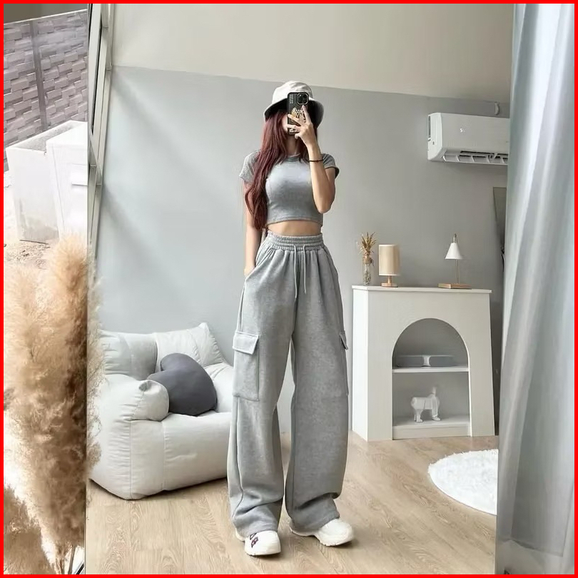 Celana Panjang Jocar Jogger Kulot Kargo Cargo Fleece Olahraga Senam