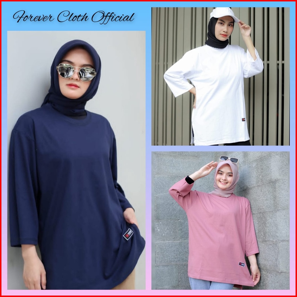 Kaos Oversize Wanita Atasan Lengan 7 8 Baju Hijab Style Motif Print Forever Beli 4 Gratis 1 Acak