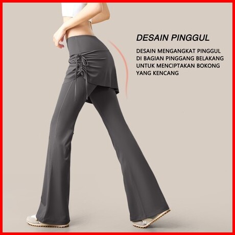 2-in-1 Legging Rok Celana Olahraga Wanita Highwaist Skirt Pant Tali Serut Samping Pilates Yoga