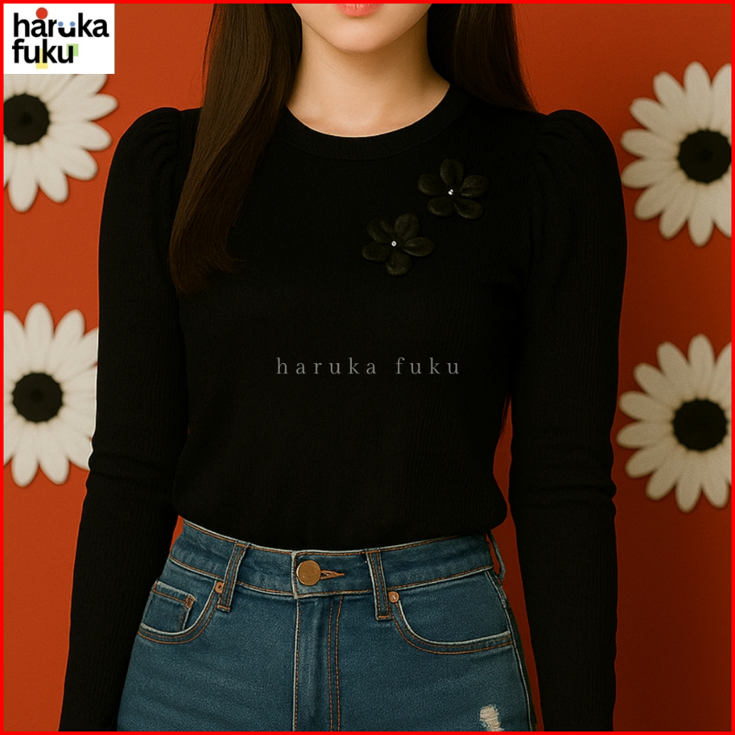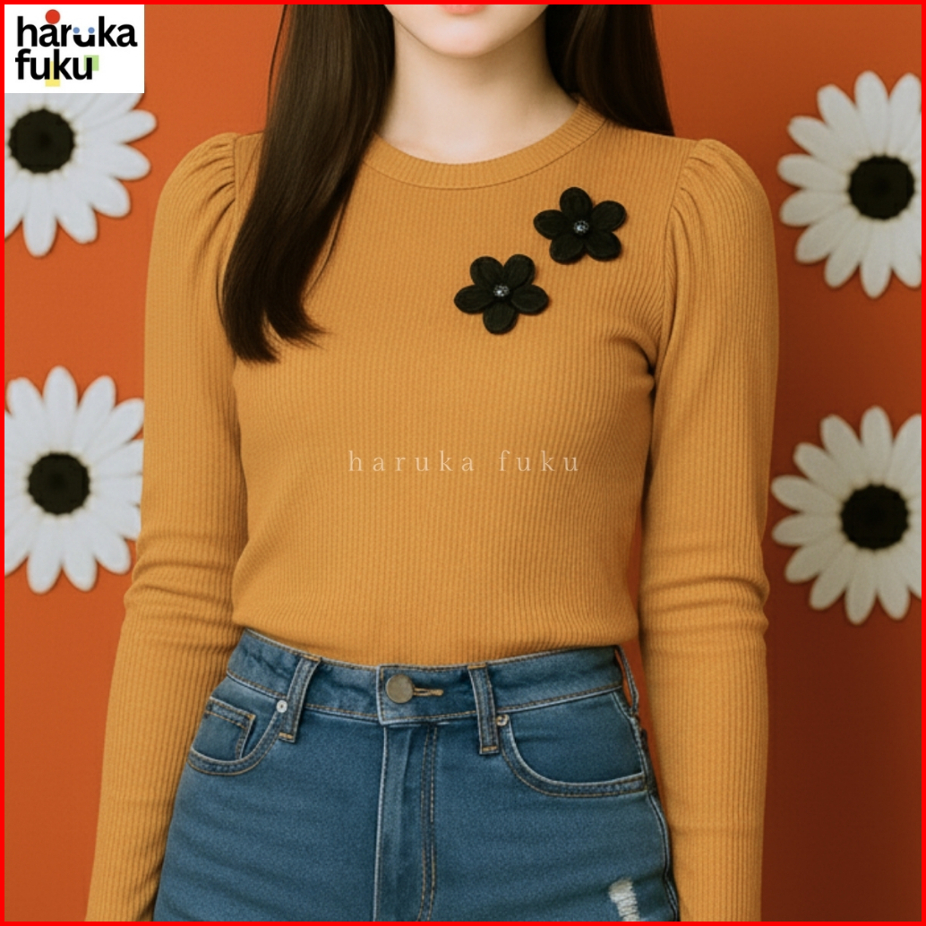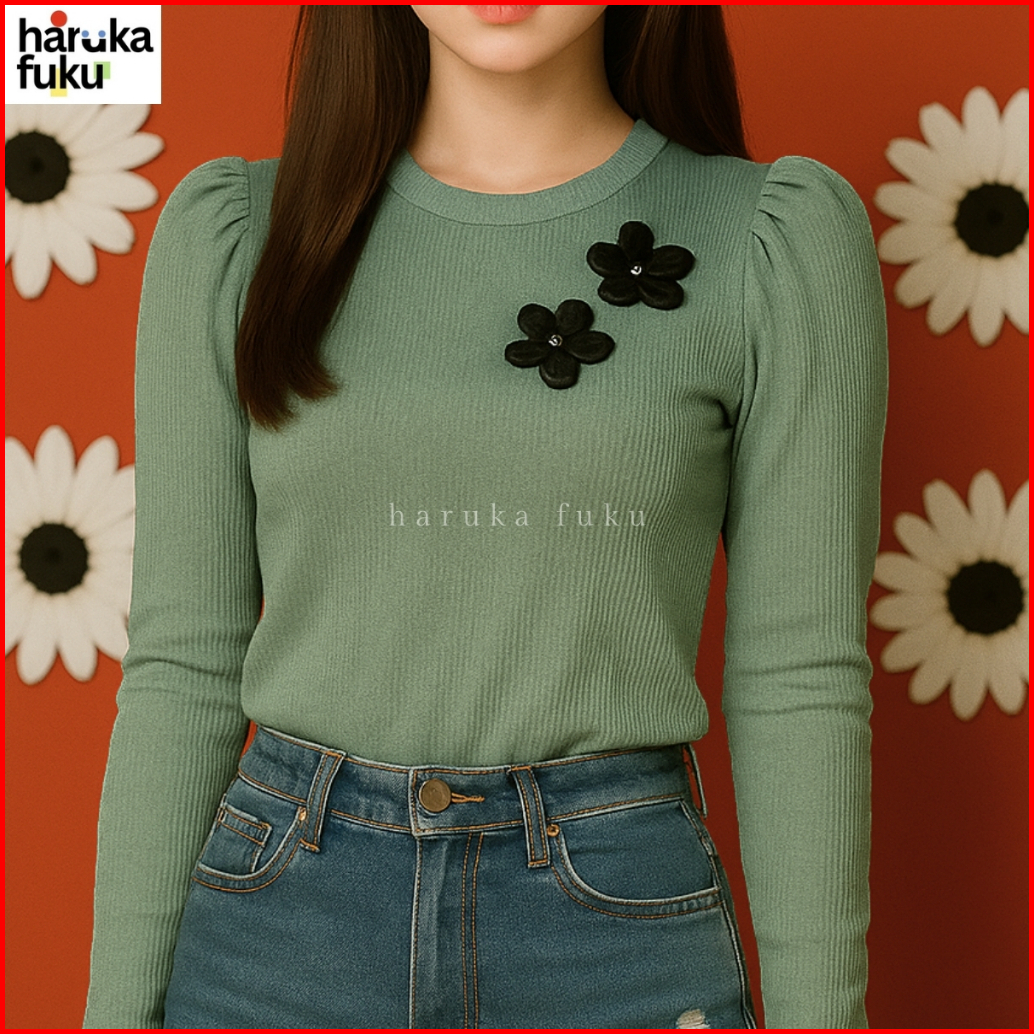 Kaos Wanita Longsleeve Premium Top Atasan Knit Puffy Shoulder