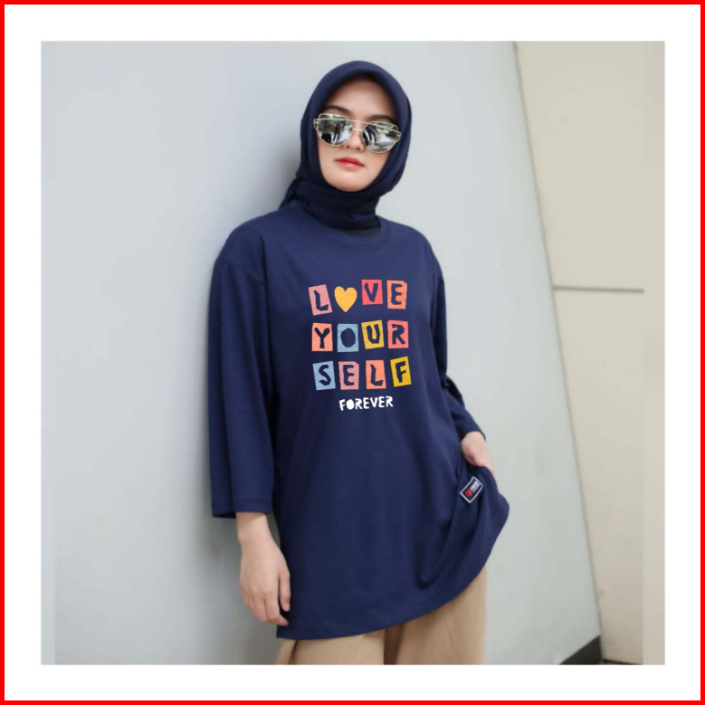 Kaos Oversize Forever Hijab Style Dtf Print Motif Lengan Panjang 7 8 Beli 4 Gratis 1 Acak