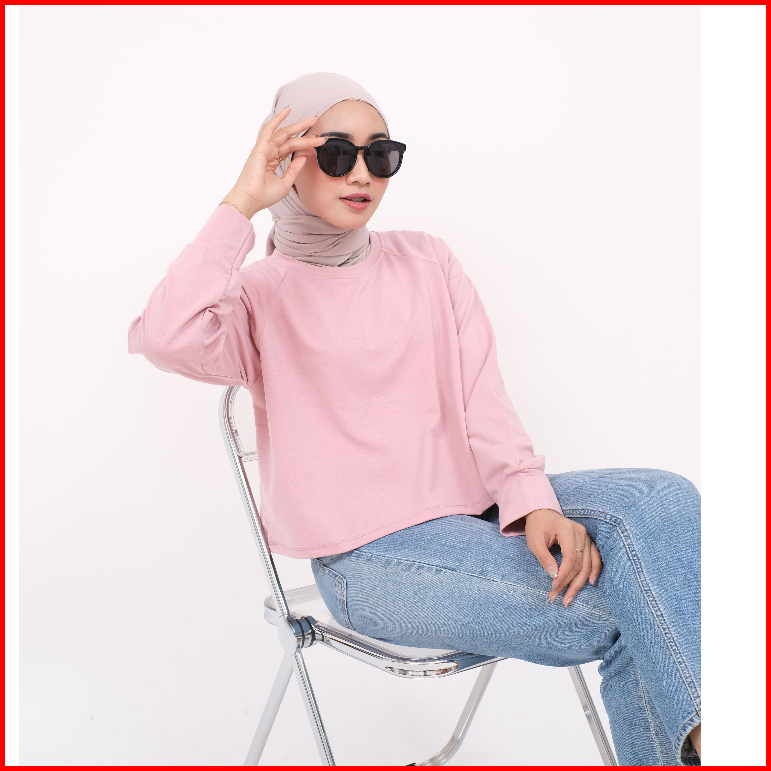 Crop Tee Oversize Kaos Polos Crop Top Lengan Panjang Hijab Friendly