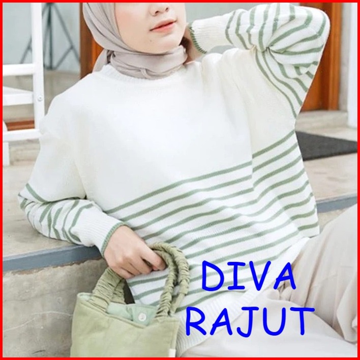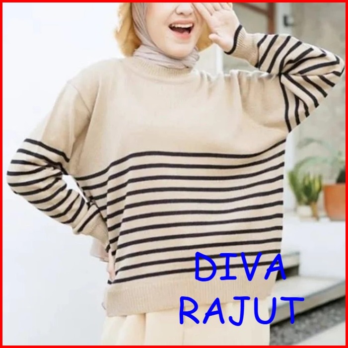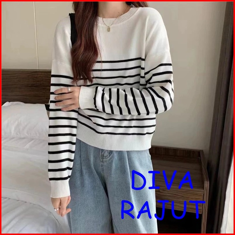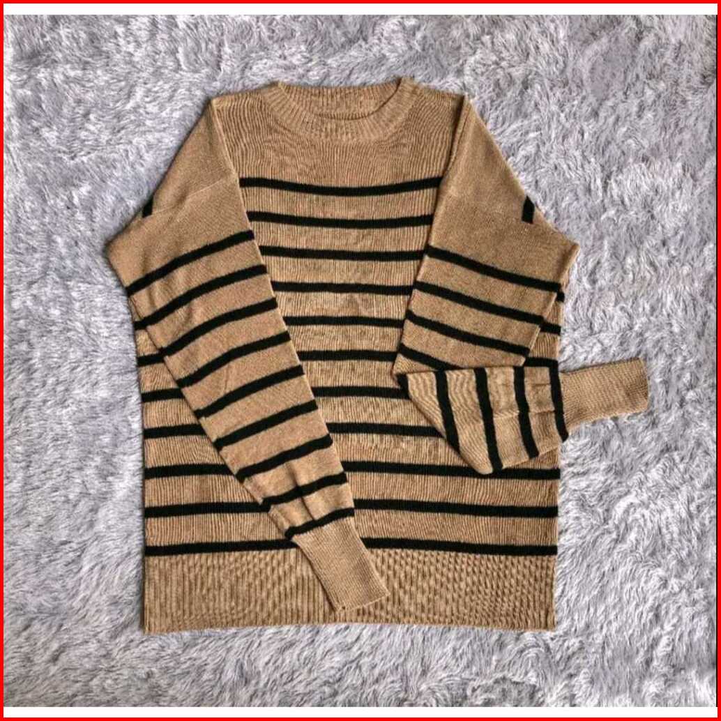 Yora Sweater Rajut Garis - Garis Over Size Korean Basic Premium