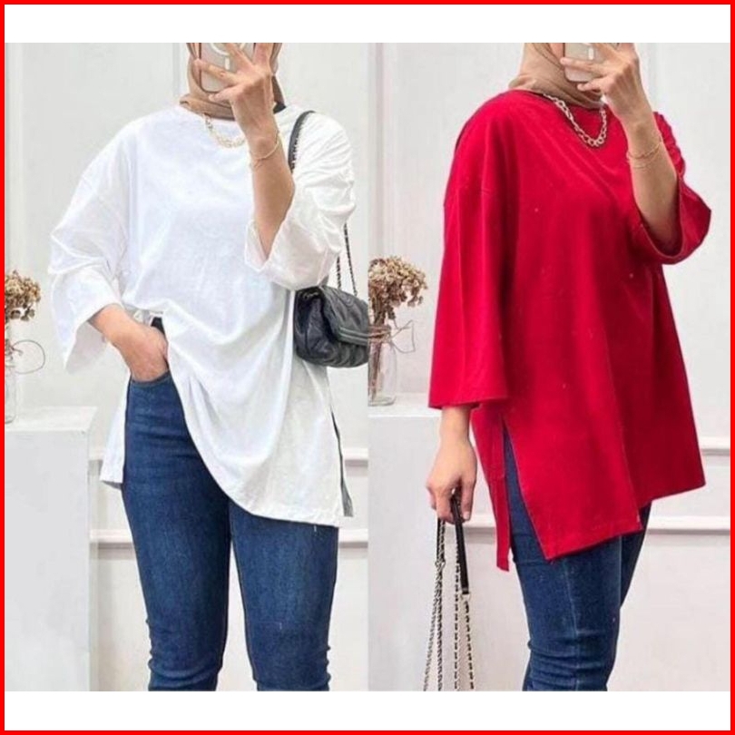 Kaos Polos Wanita Jumbo Xxxl Lengan 7 8 Atasan Hijab Wanita