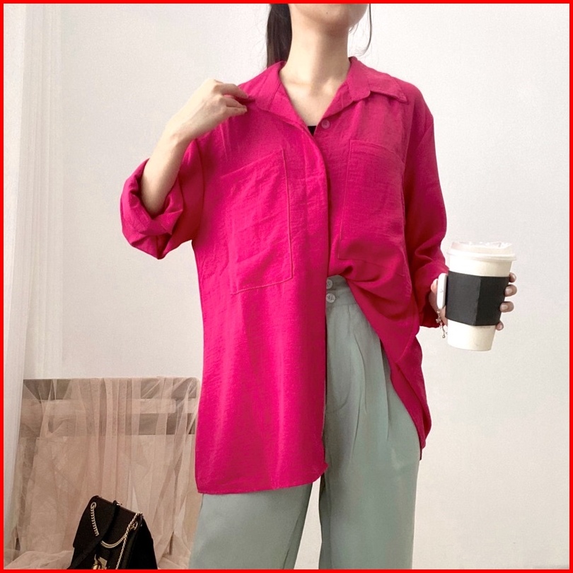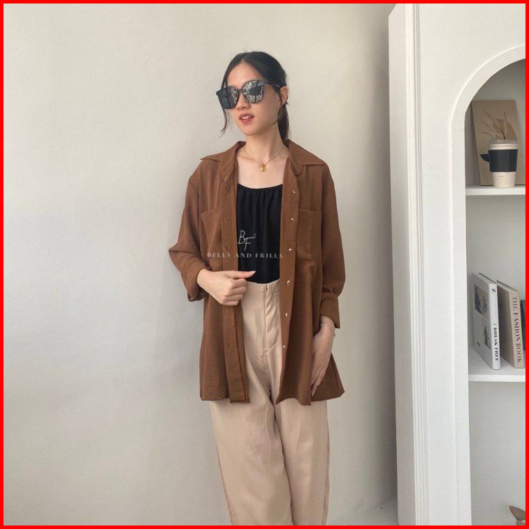 Clara Kemeja Oversized Krinkel Kemeja Wanita Crinkle Airflow Oversized Shirt Korea Kemeja Jumbo Hijab Friendly Kemeja Tu