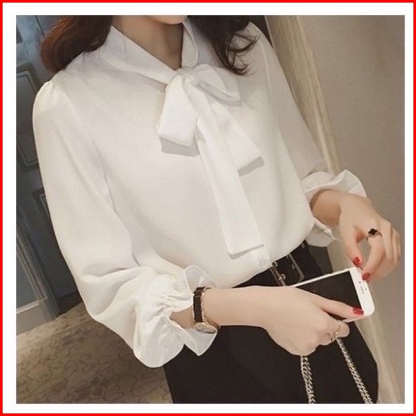 Fanya Blouse Wanita Lengan Panjang Kerah Pita Hijab Friendly Casual