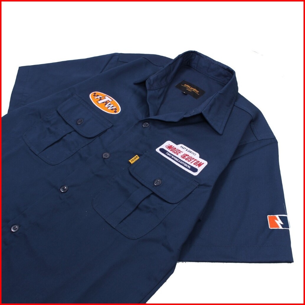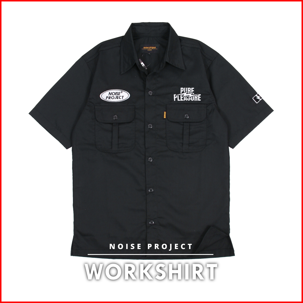 Sixteen - Kemeja Pria Workshirt Kemeja Kerja Harian Navy Workshirt Noise Project Full Bordir