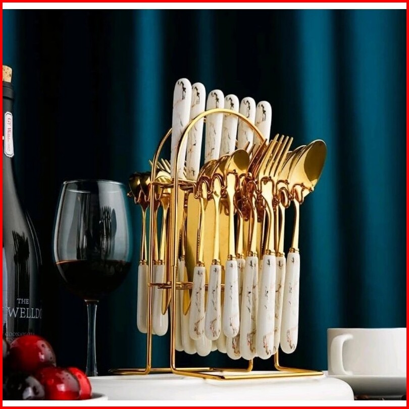 Sendok Cutlery Set Sendok Sultan Makan Set Isi 24 Set Marble Sendok Makan Set Bahan Stainless Tebal Rapi Sendok Set
