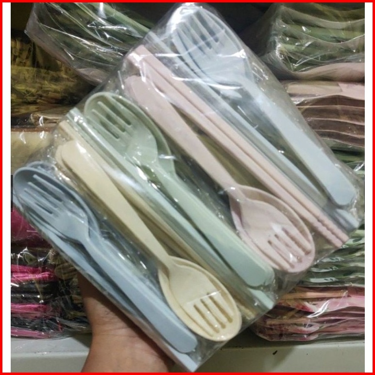 50 Set Alat Makan Sendok Garpu Sumpit Sendok Travel Lokal