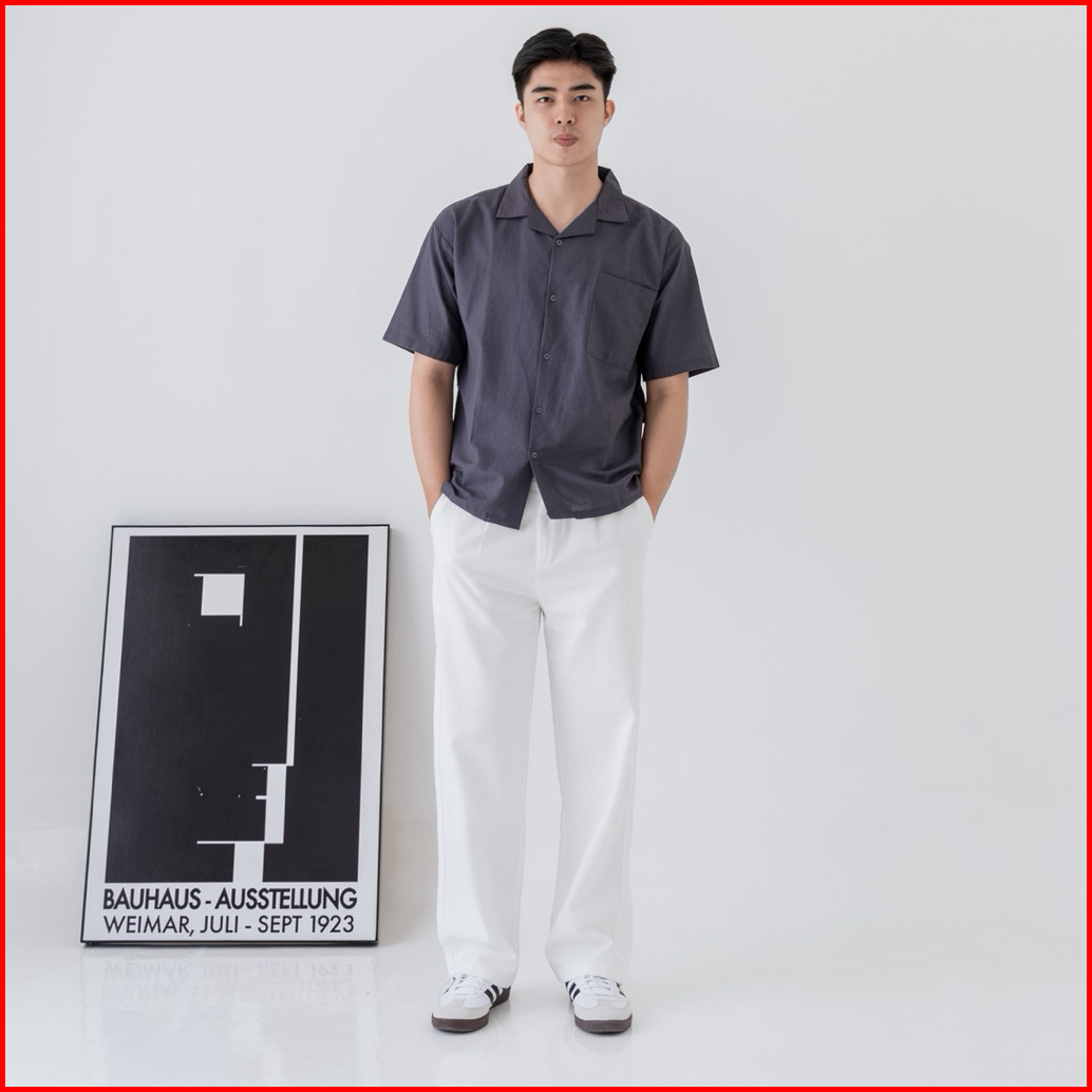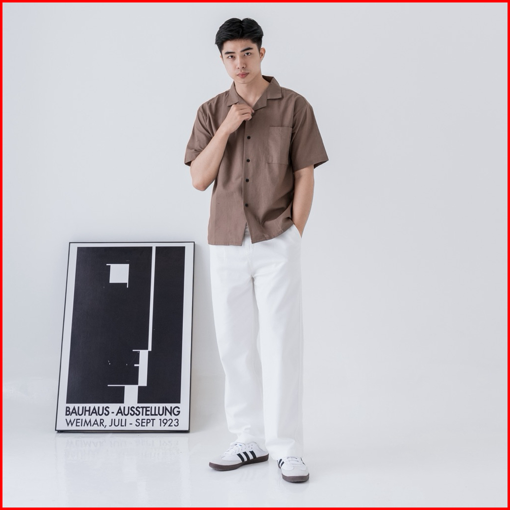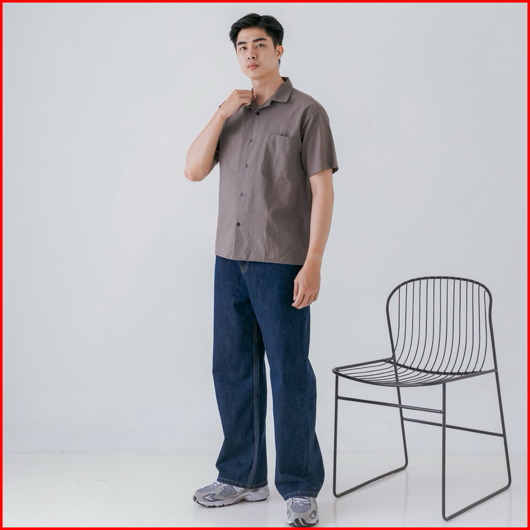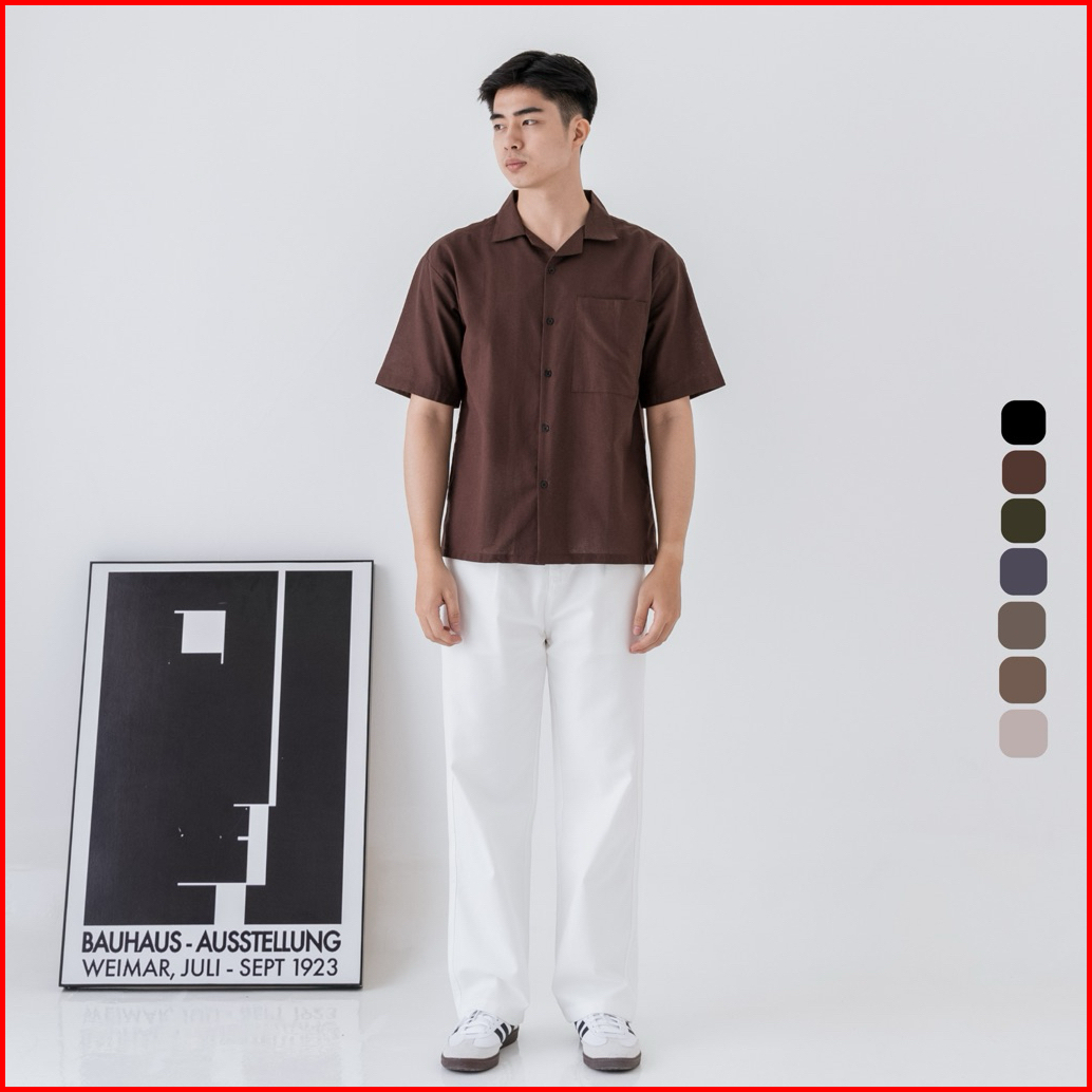 Osakaa - Cuban Linen Bowling Shirt Kemeja Linen Lengan Pendek Coffe