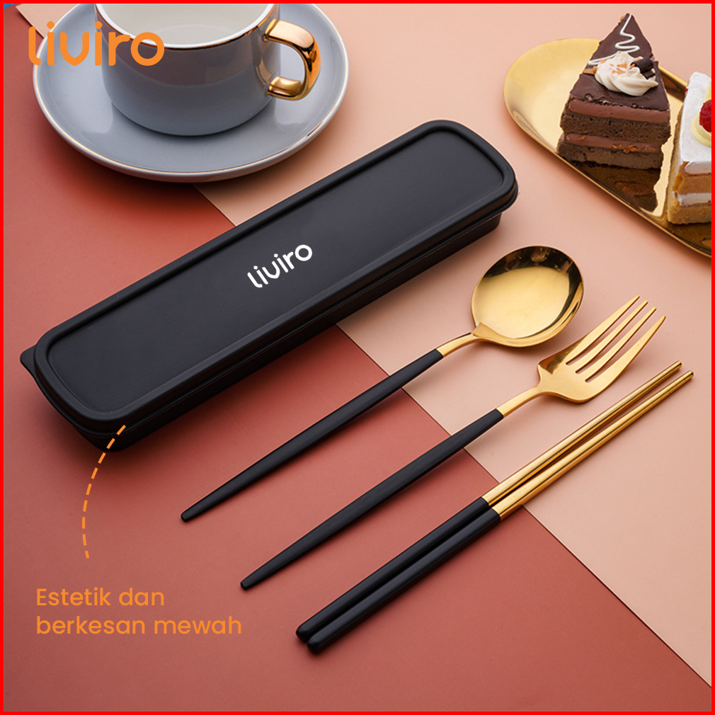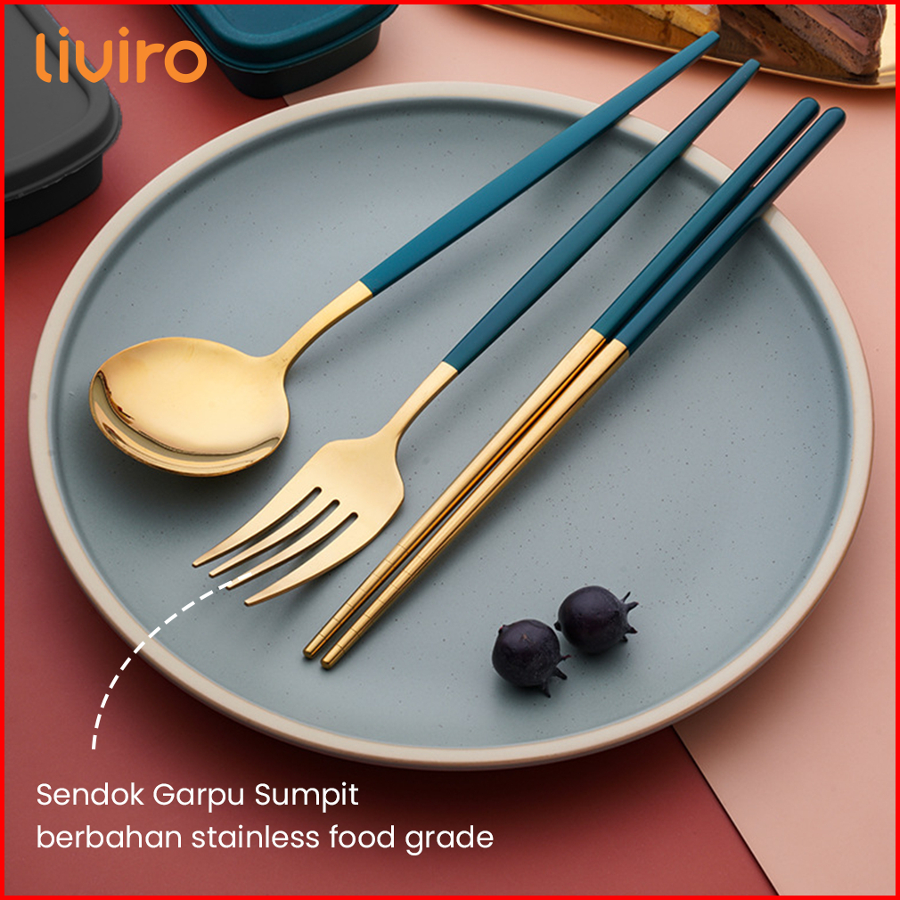 Liviro Alat Makan Set 3 In 1 Stainless Steel 304 Sendok Garpu Sumpit Dengan Kotak Praktis