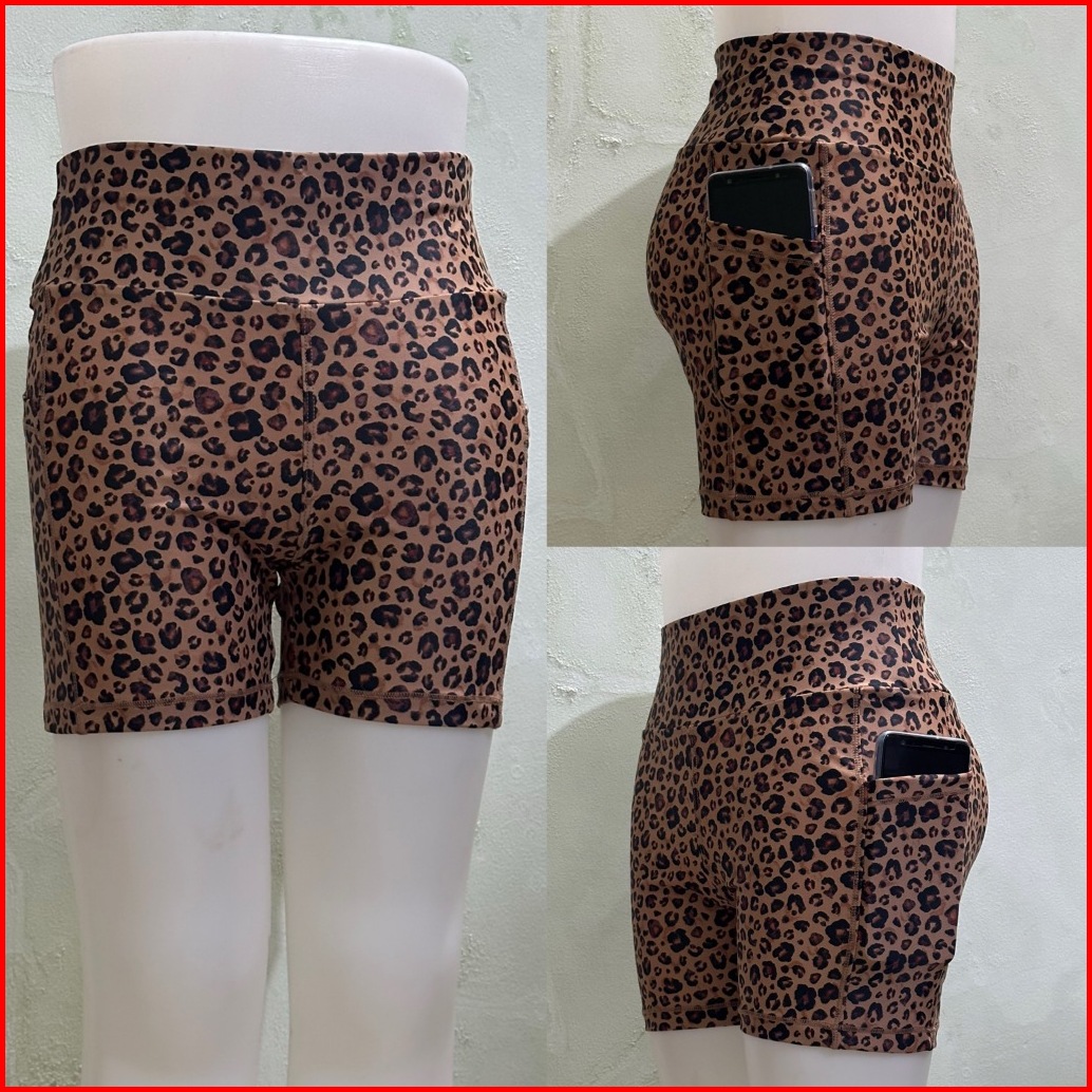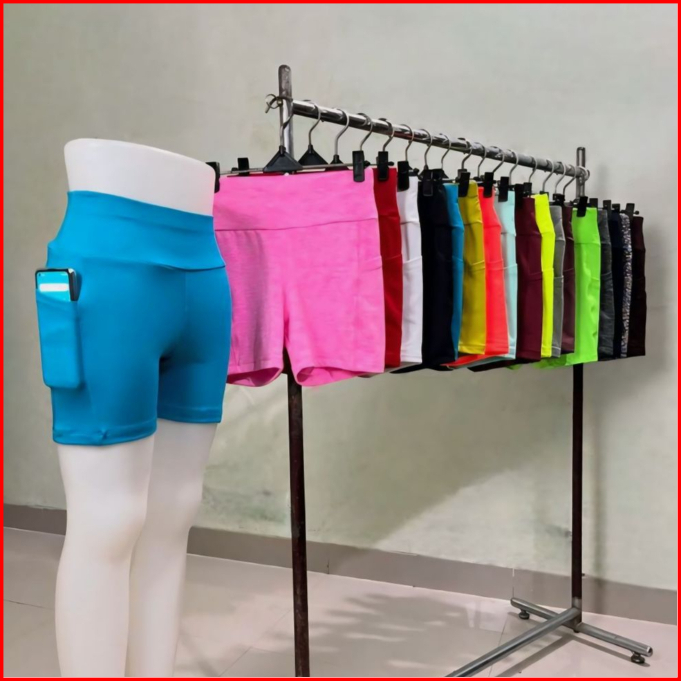 Hot Pants Kantong Wanita Short Pants Kantong High Waist Celana Senam Aerobic Celana Yoga Fitness