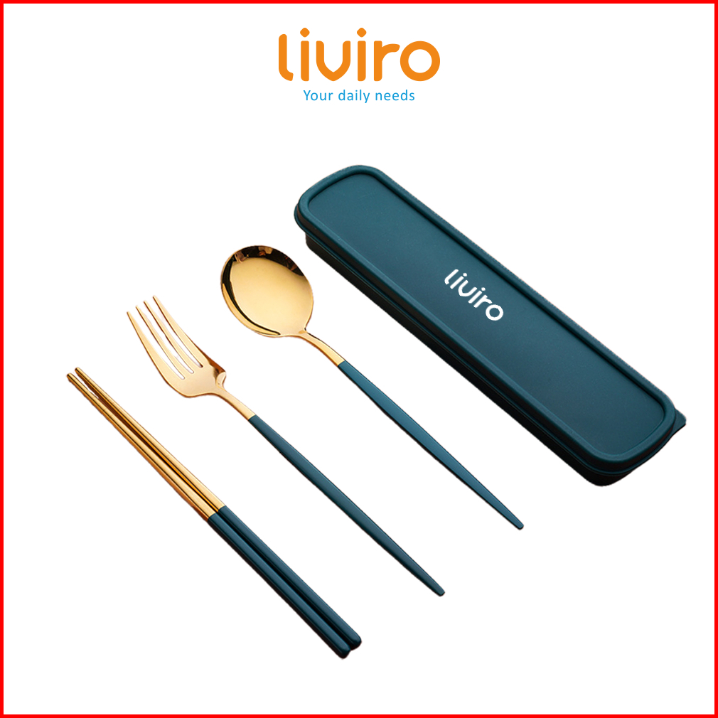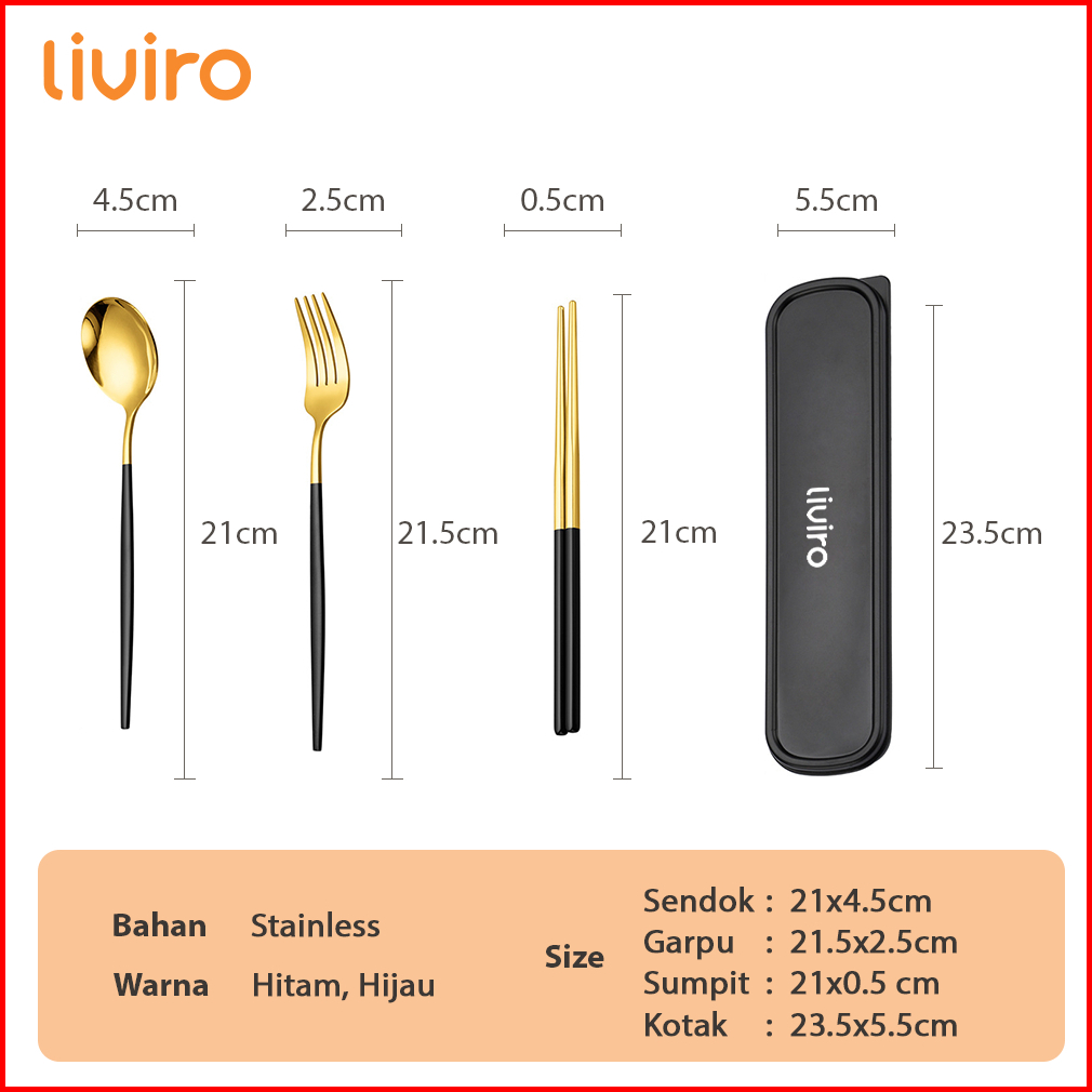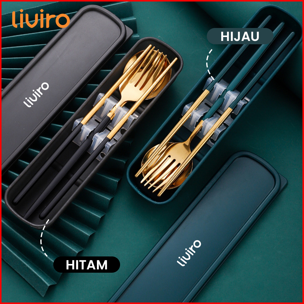 Liviro Alat Makan Set 3 Pcs Stainless Steel 304 Sendok Garpu Sumpit Set Warna Dengan Kotak Premium Quality