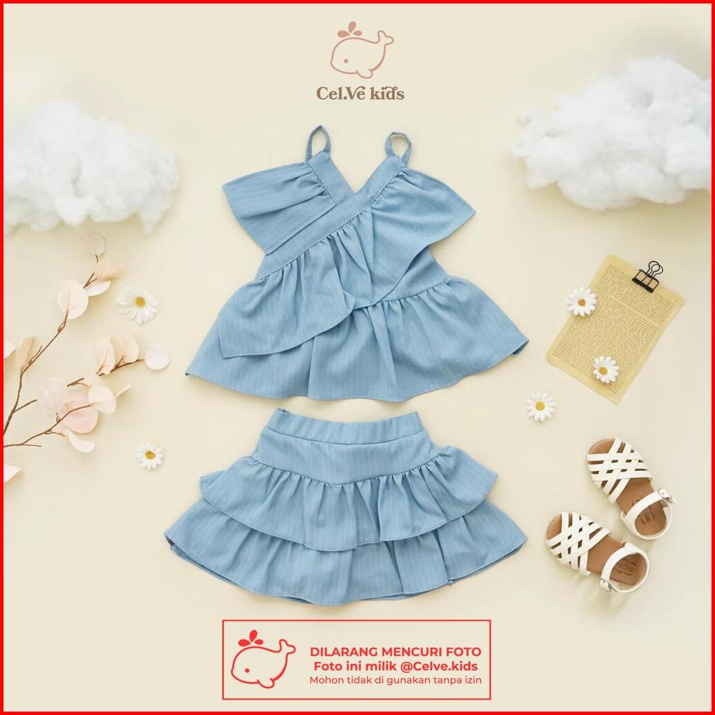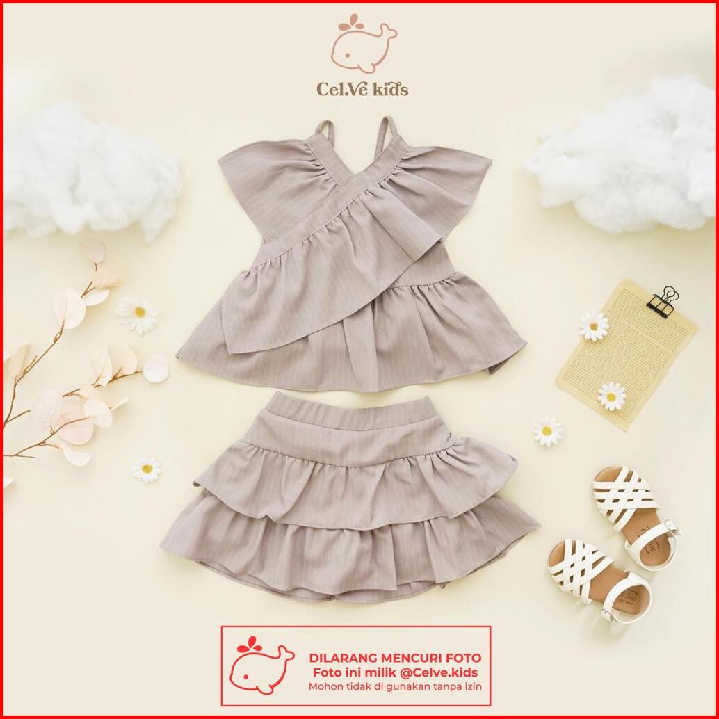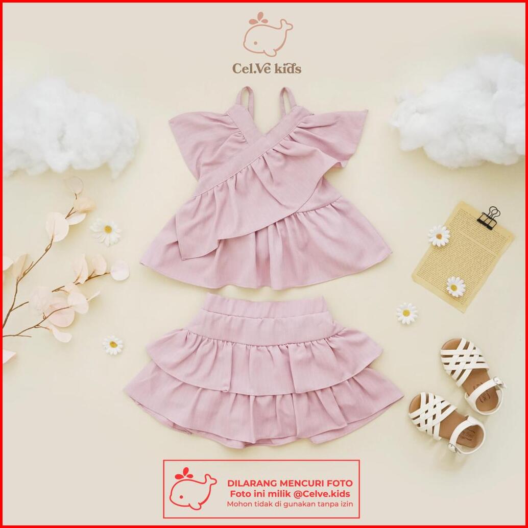 Celvekids - Stelan Cellia Set Baju Rok Celana Anak Perempuan Korean Style Semiwool Usia 1-8th