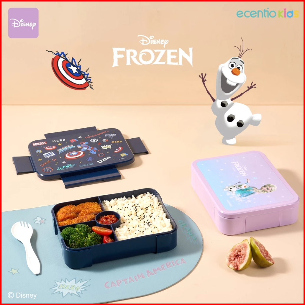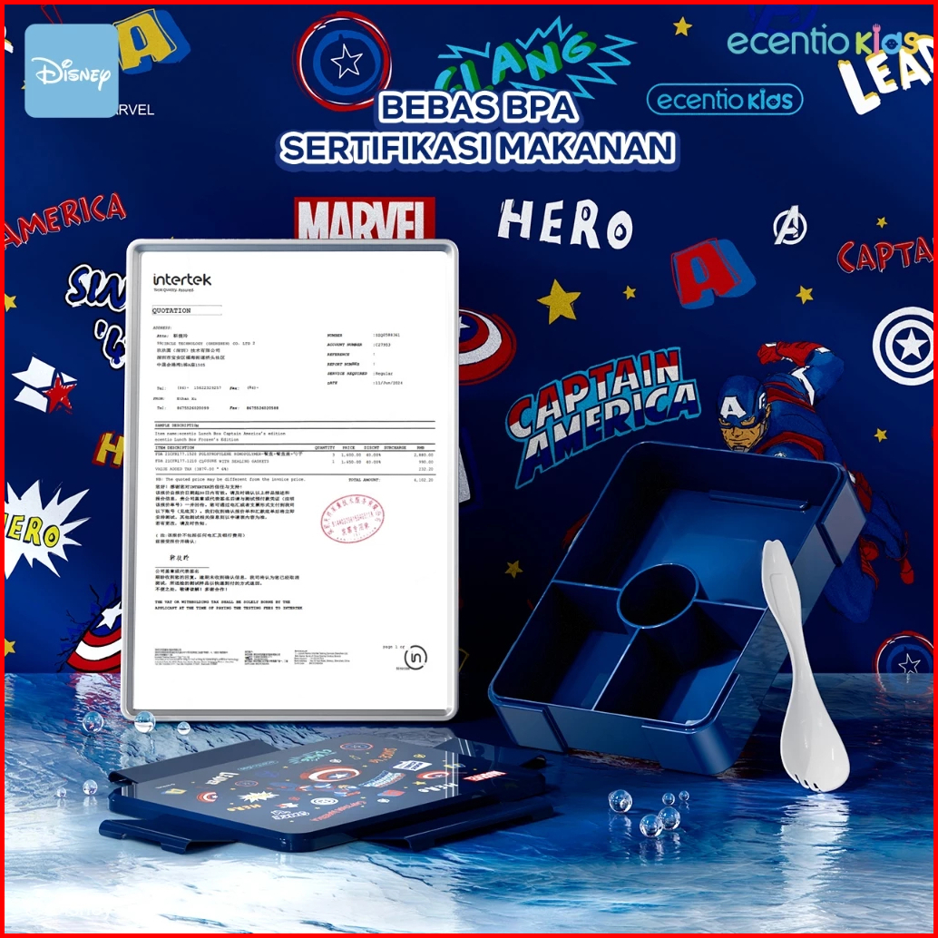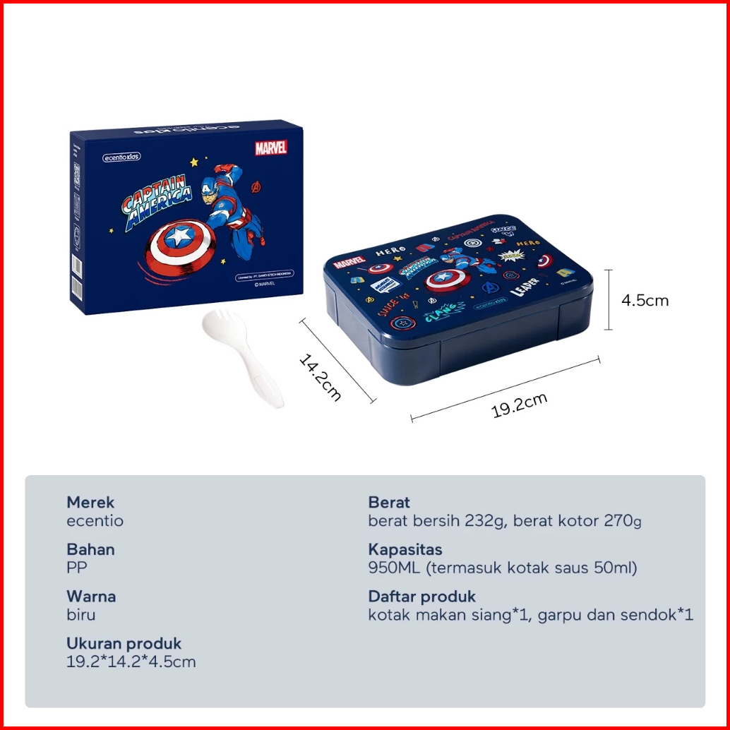 Ecentio Lunch Box Set Anak Anti Tumpah 4 Grid Tempat Makan Marvel Captain America Lucu Dengan Sendok