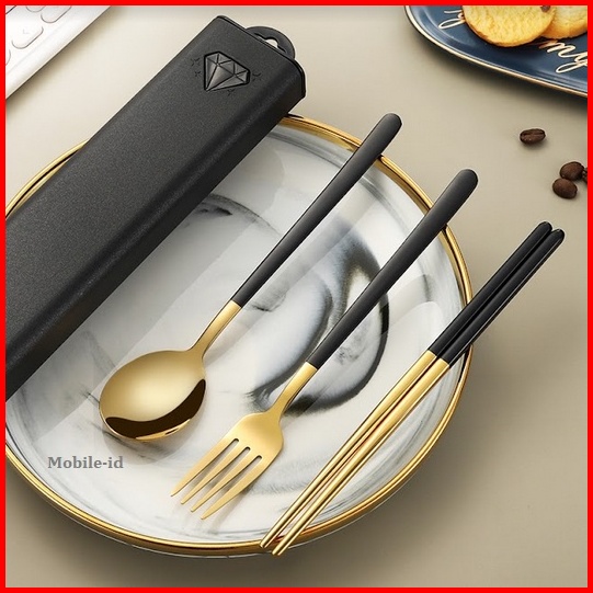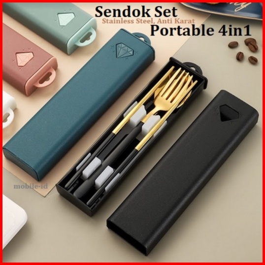 Sendok Makan Garpu Sumpit Portable Stainless Set 4in1 Alat Makan Korea Cutlery Set
