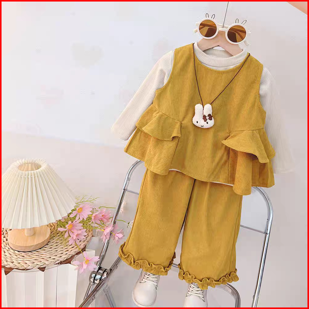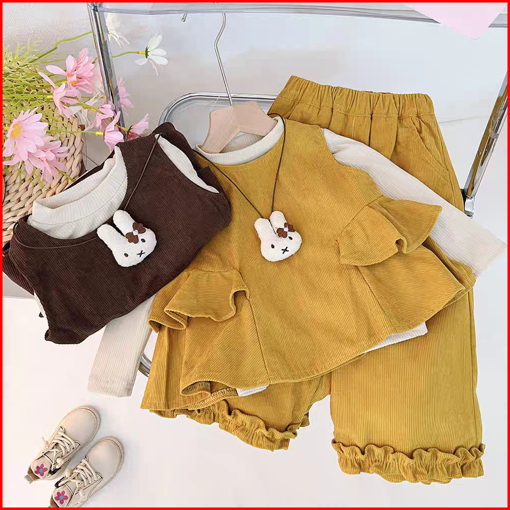 Yihan Kids 3ini 1 Setelan Anak Perempuan Motif Kelinci Uisa 1-6th Set Corduroy 3ini1 Anak Perempuan Tebal Stylish