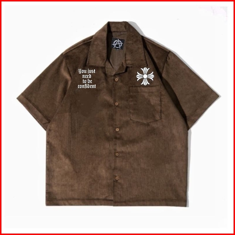 A Word Boxy Fit Corduroy Kemeja Pendek Pria Katun S-xxl