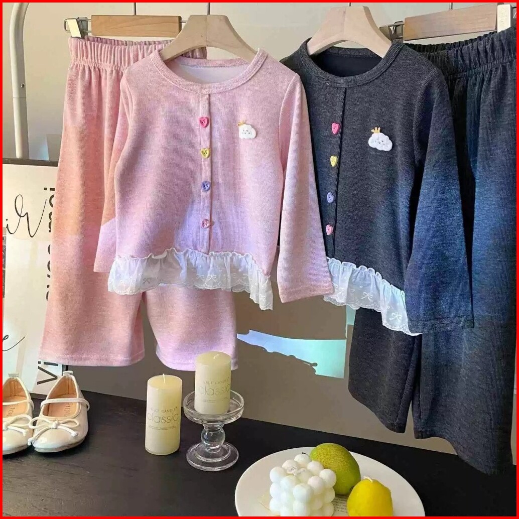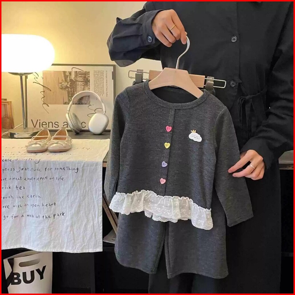 Hoobaby 2-11 Tahun Setelan Dua Potong Palsu Untuk Anak Perempuan Atasan Celana Renda Gaya Korea