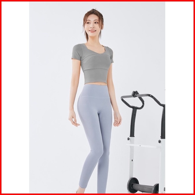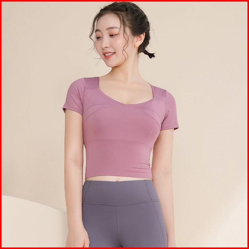 Timetosport Pakaian Yoga Lengan Pendek Celana Ketat Olahraga Elastis Cepat Kering Atas Termasuk Bantalan Dada 1123