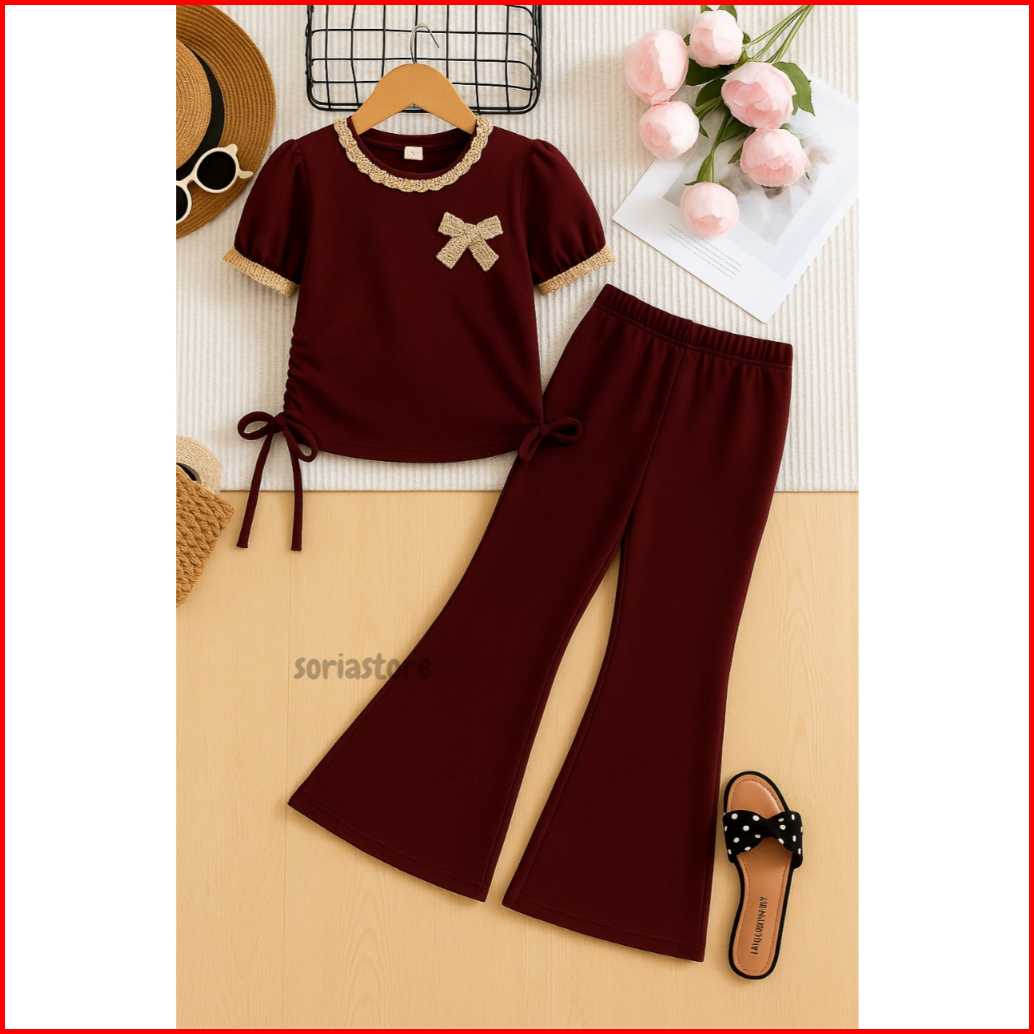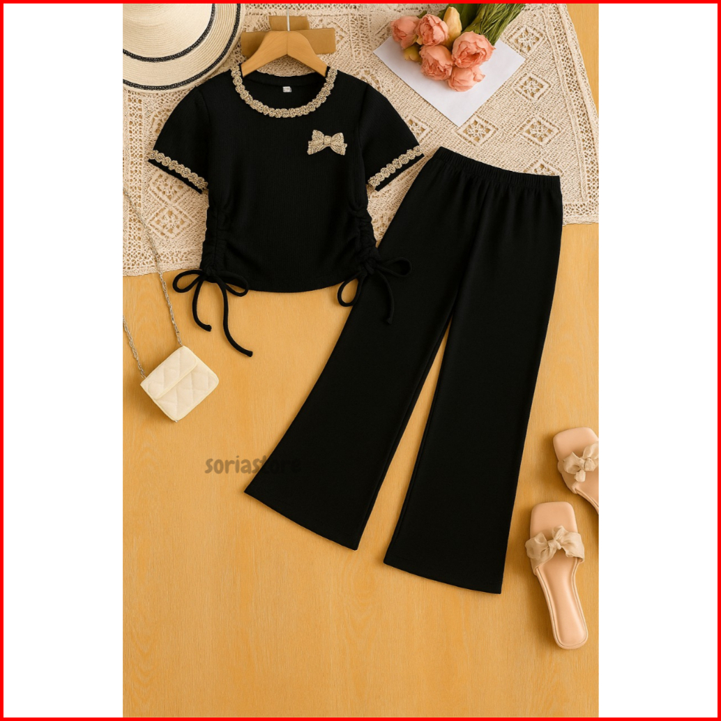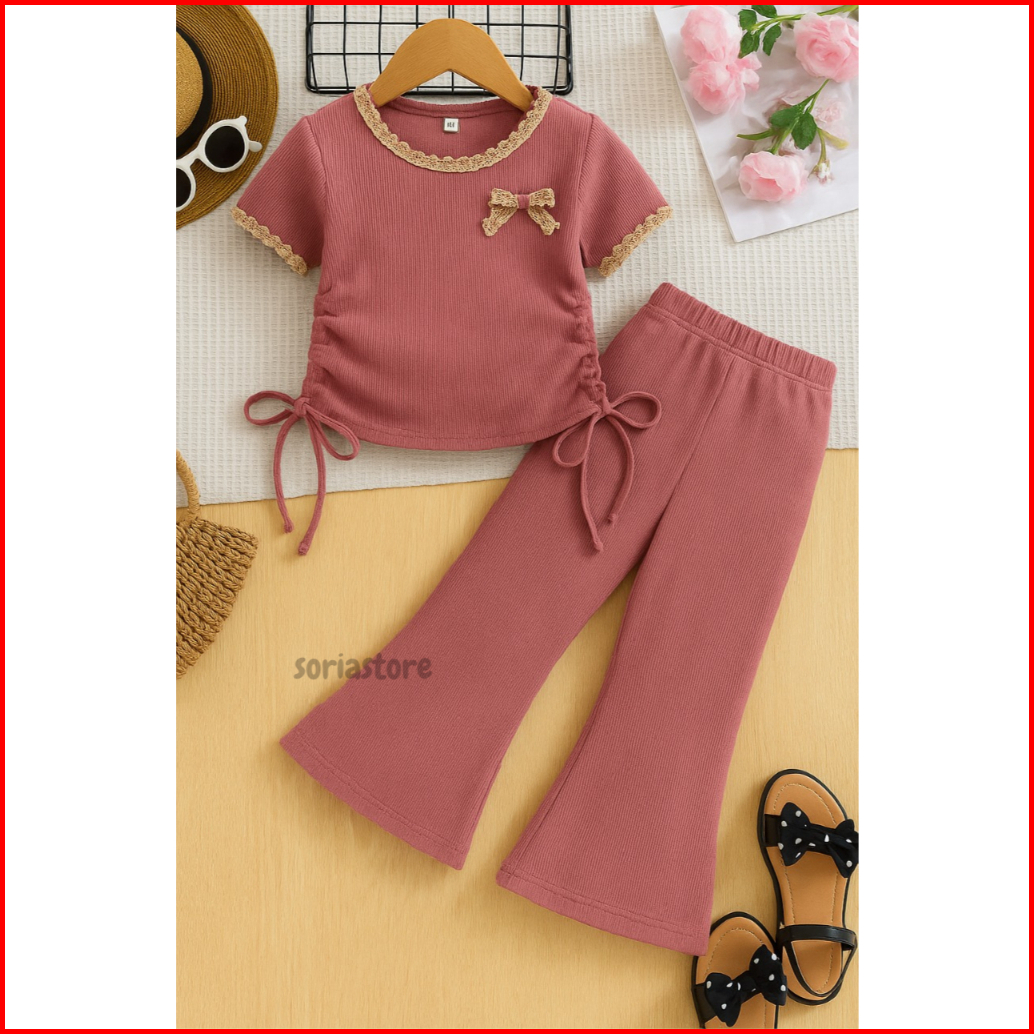 Setelan Baju Anak Perempuan Japan Line Motif Pita Usia 1 Sampai 10 Tahun Model Terbaru